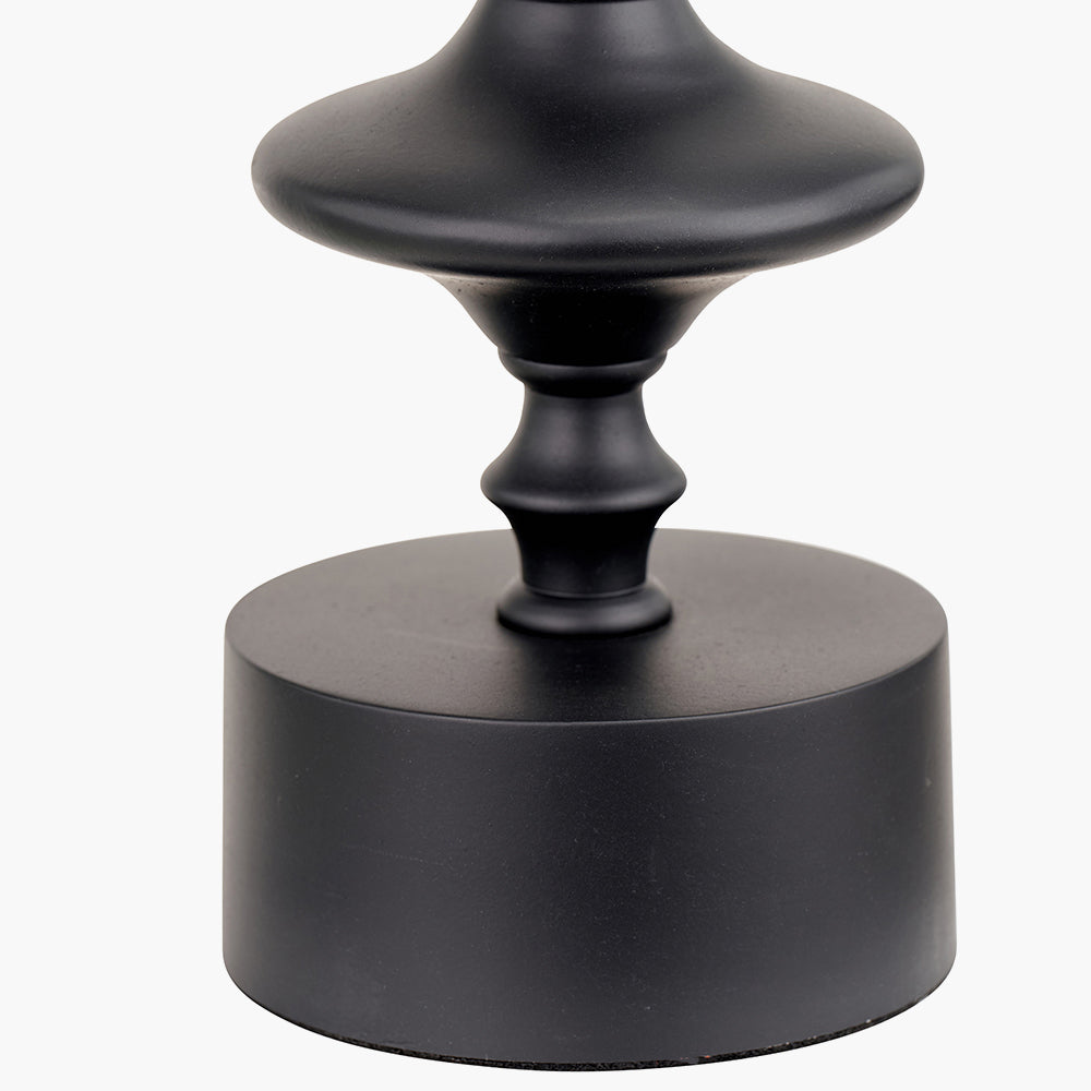 Emilio Matt Black Candlestick Table Lamp Base with Izara 35cm Cinnamon Ikat Patterned Mushroom Pleat Tapered Lampshade is a contemporary lighting piece that elevates any space. The matte black candlestick base offers clean lines and a modern silhouette, crafted in India for quality and a refined finish. Complete with a cotton gathered tapered lampshade, this lamp blends architectural style with warm, inviting light.