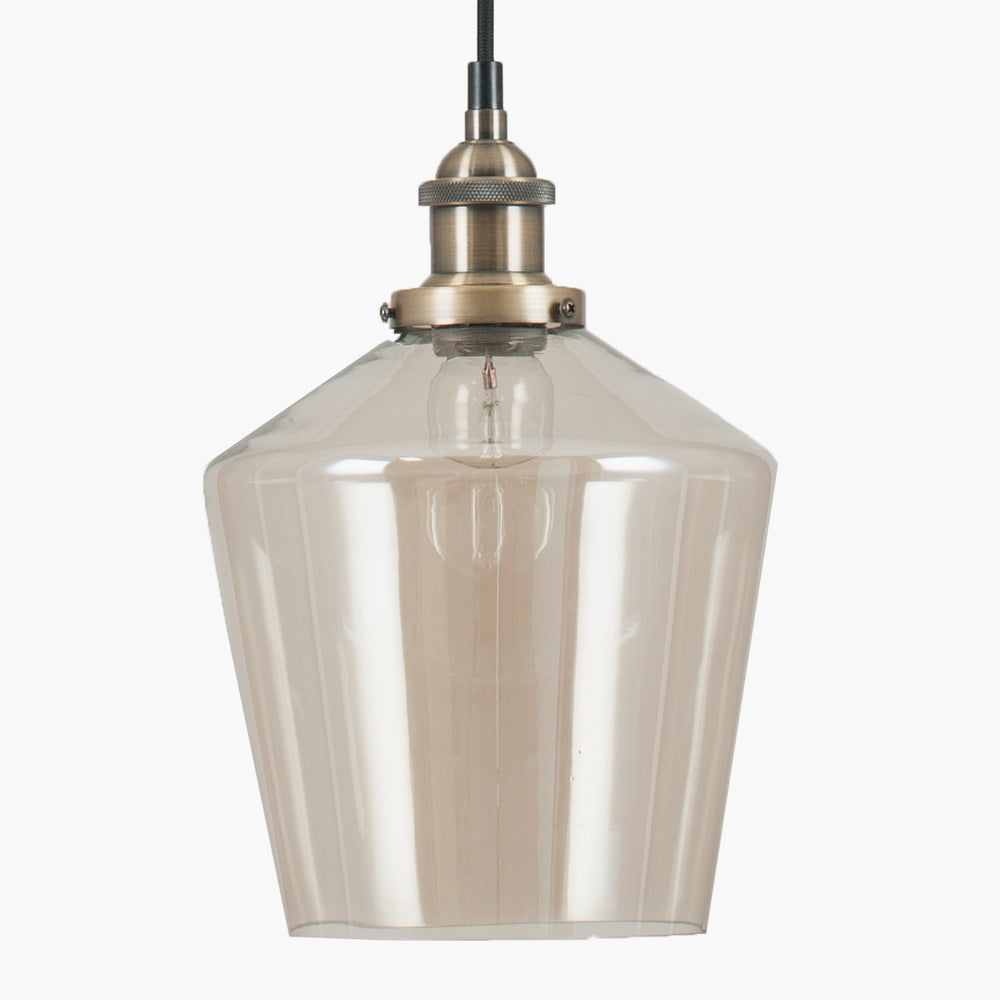 Simple, crisp and classic, this electrified Emmanuelle lustre glass cloche pendant is a true style icon. This gorgeous pendant light is suspended from a height-adjustable black fabric cable and accented with a stylish antique brass lamp holder and ceiling cup.