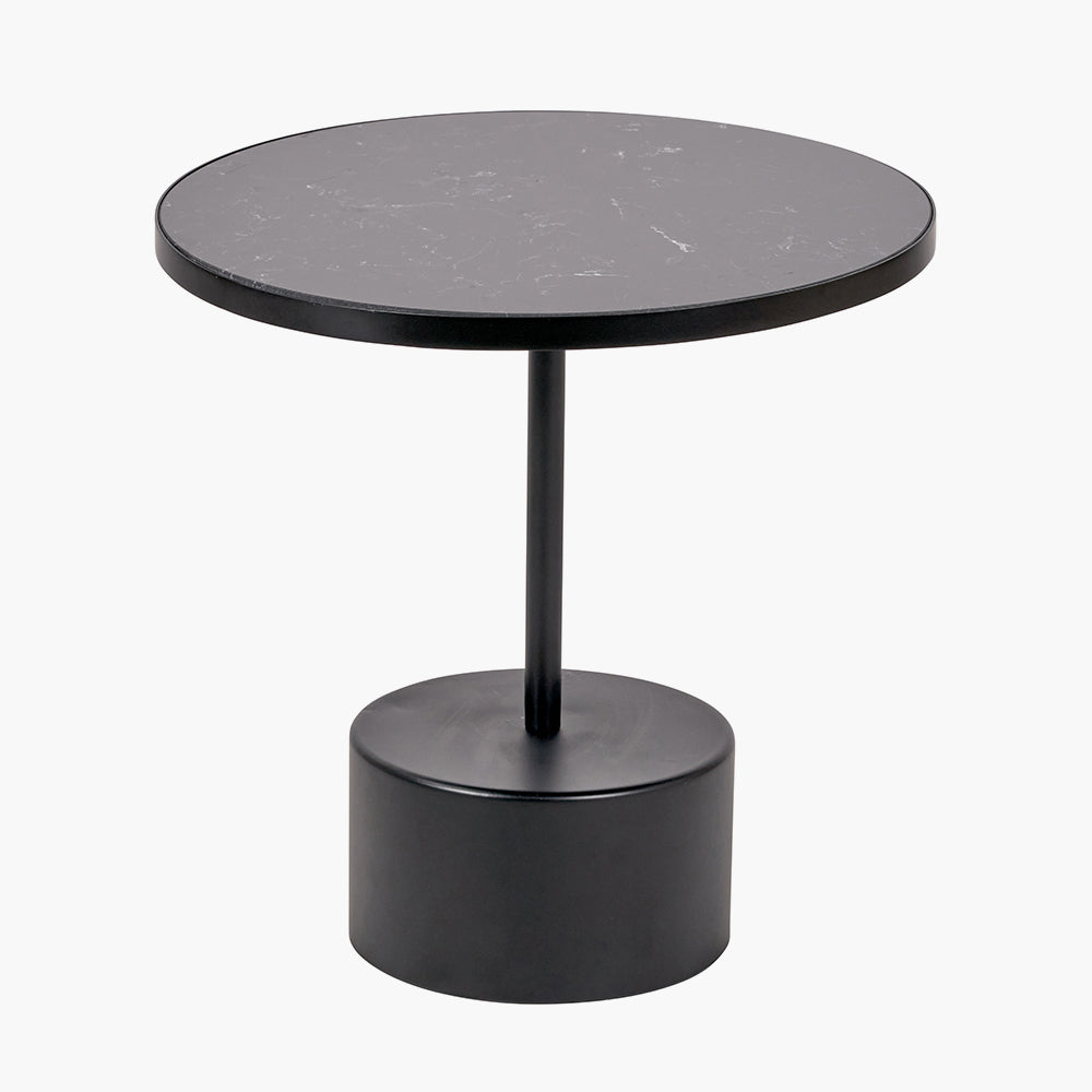 Enzo Black Marble and Black Metal Cylinder Base Coffee Table