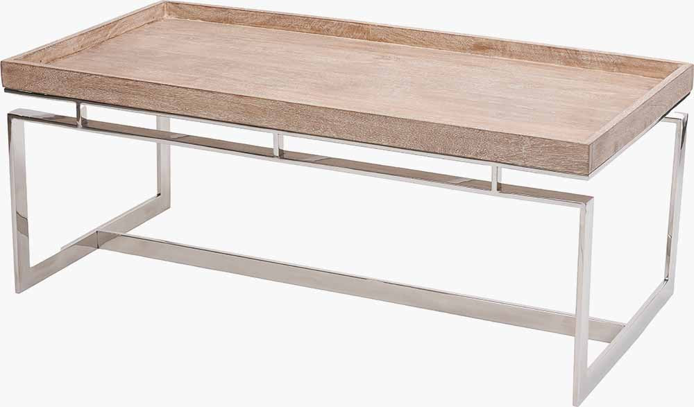 Evelyn Natural Antique Finish Mango Wood and Silver Metal Coffee Table