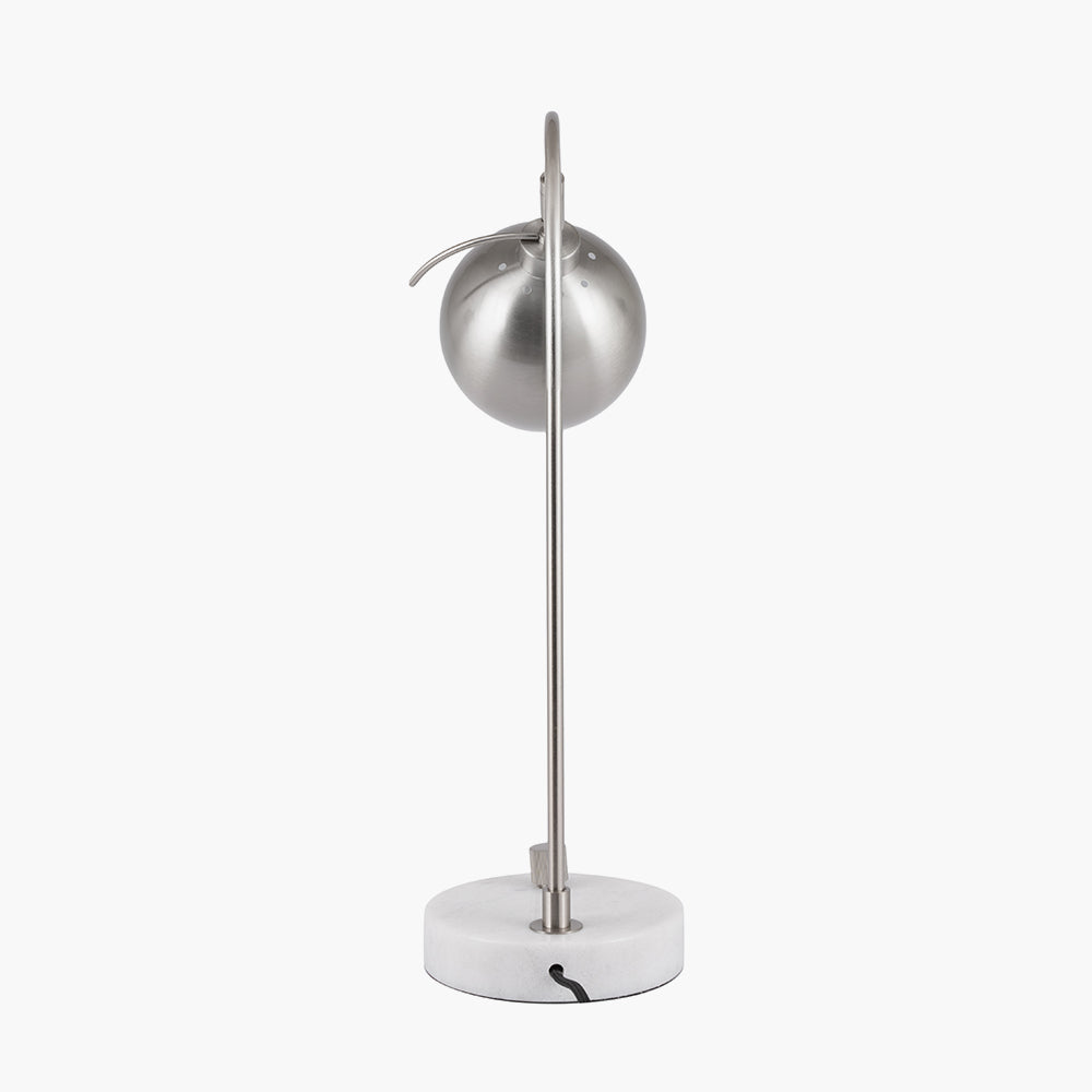 Feliciani Brushed Silver Metal and White Marble Task Lamp brings a sleek, modern edge to any desk or side table. The refined contrast between brushed silver metal and a white marble base creates an effortlessly stylish centerpiece that complements contemporary and classic interiors alike.
