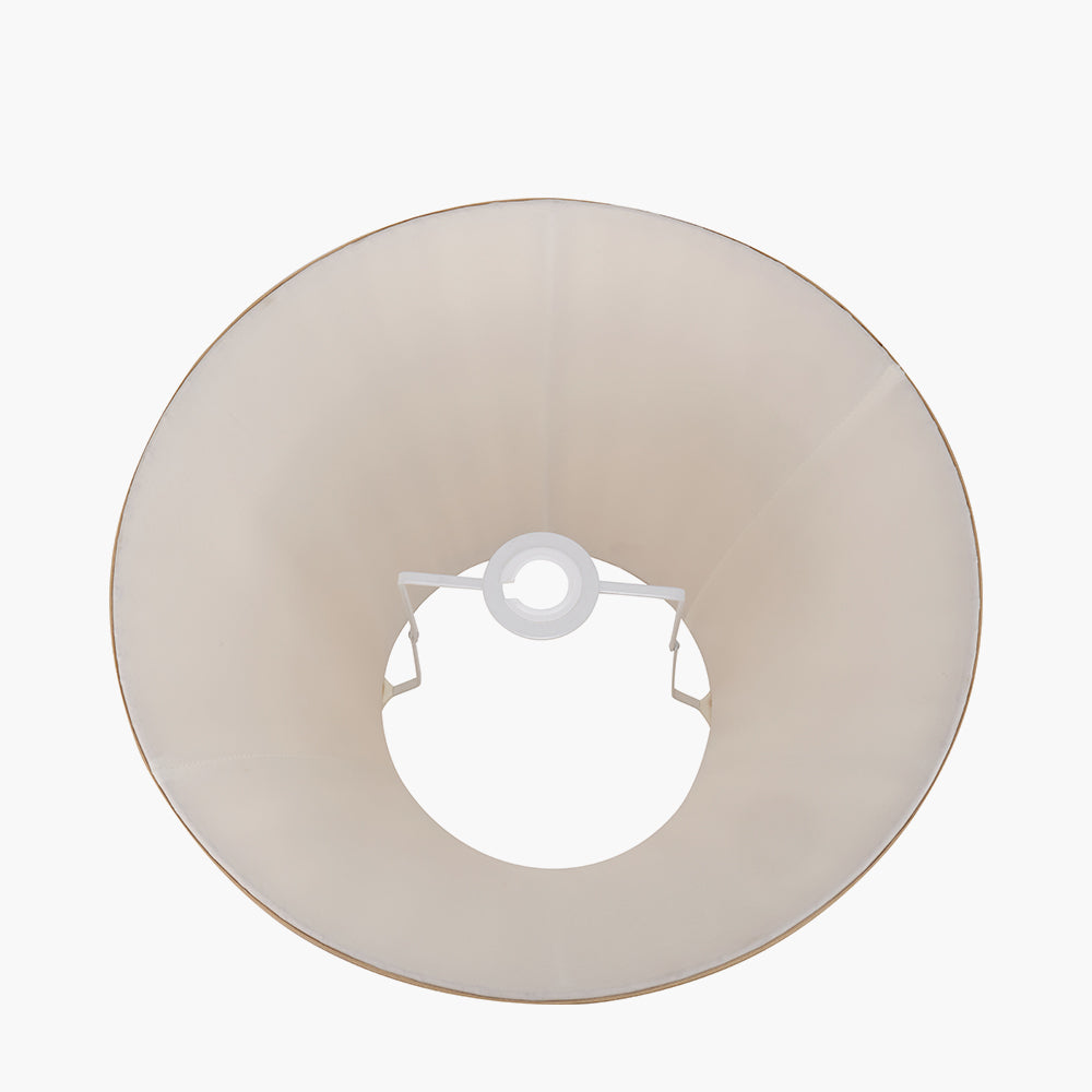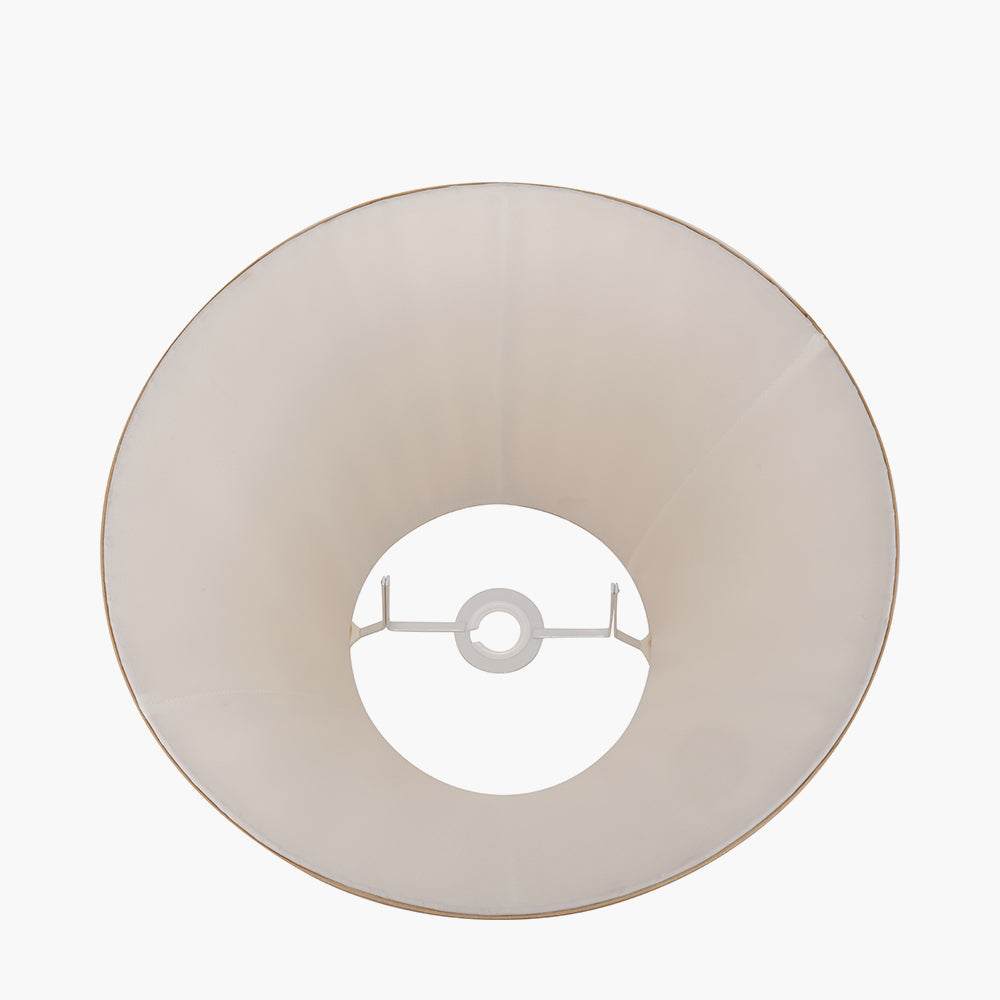 A classic 45cm empire shade created usinig a silk mix material which is has a beautiful pinch pleat detail. Finished in a gold colour and soft balloon lining this shade will sit beautifully on most base styles creating a timeless classic. This lampshade features a reversible gimbal, allowing it to be used with either a table or floor lamp base, or reversed for use as a ceiling pendant.