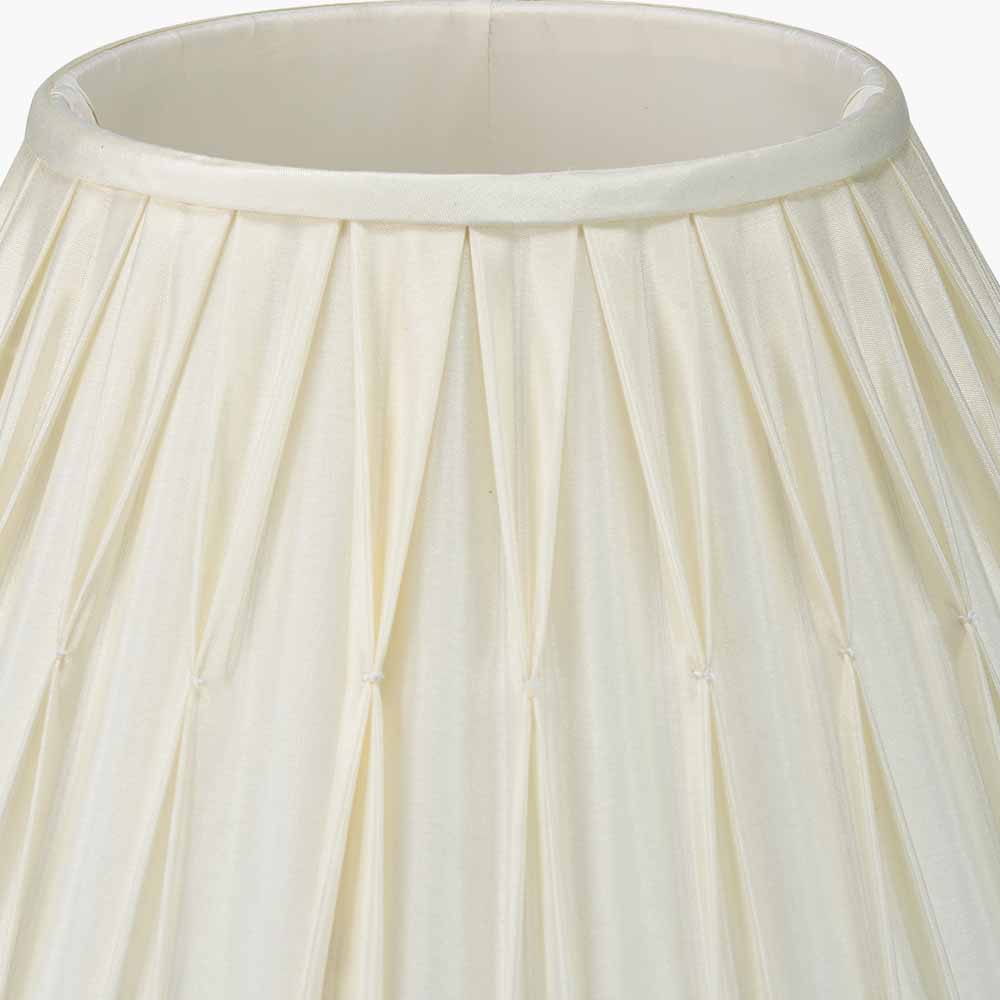 Introducing the Garbo 50cm Cream Silk Mix Pinch Pleat Tapered Lampshade, a classic 50cm empire shade crafted from a silk mix that showcases a beautiful pinch pleat detail.