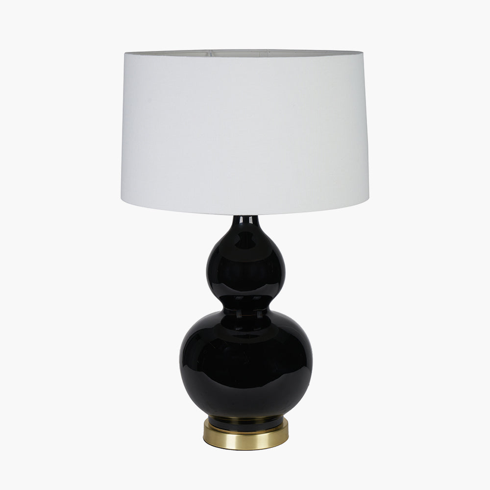 Featuring a striking shiny black glaze, this lamp captures attention with its unique curvaceous silhouette. The brushed gold metal detail adds a touch of opulence, making it the perfect accent for any room in your home.