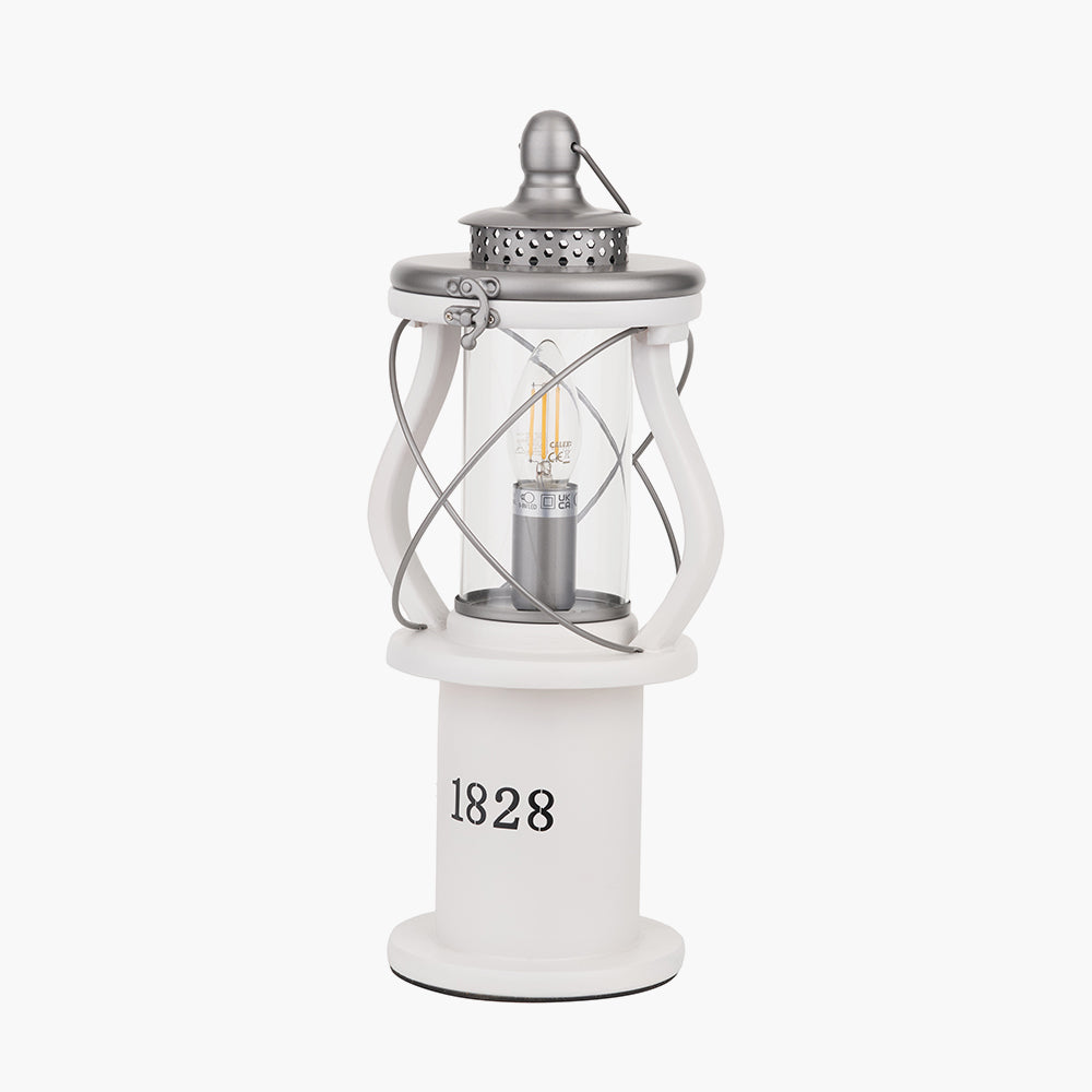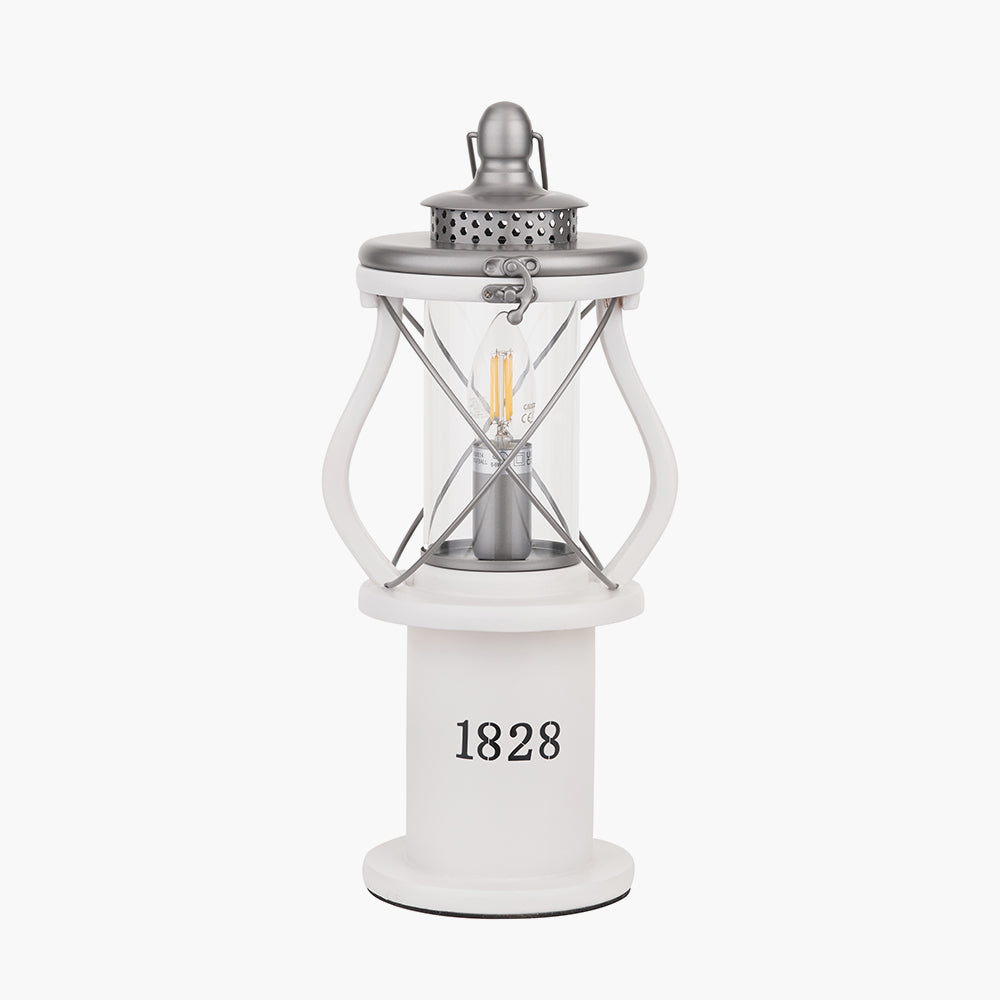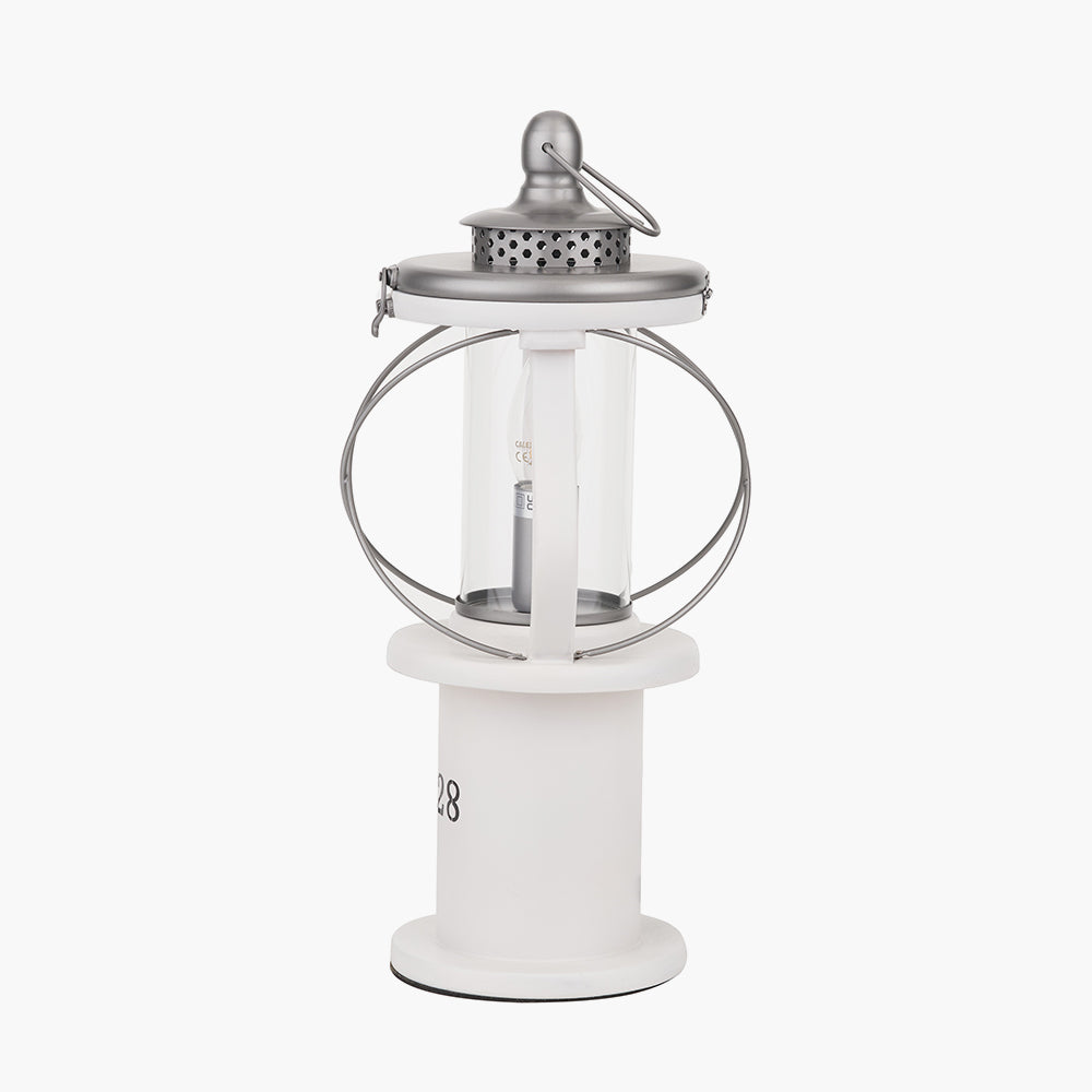 Bring timeless charm to any room with the Gibson White Wood Lantern Table Lamp. Crafted from solid pine wood and finished in a washed white, its soft, weathered look pairs beautifully with satin pewter metalwork for a refined, coastal-inspired silhouette.