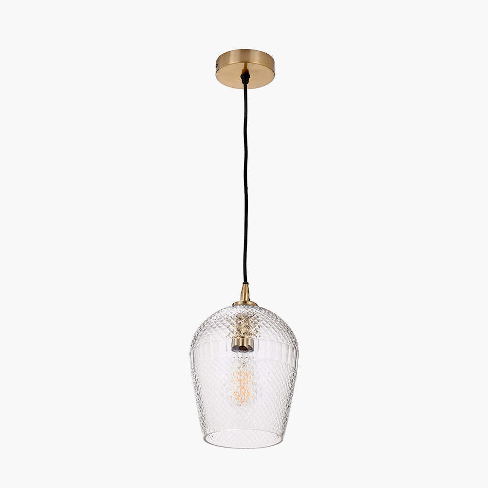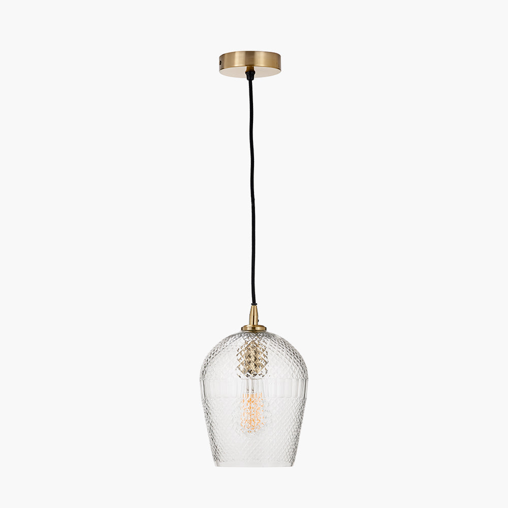 Create a refined and elegant space with our Giselle Diamond Design Clear Handcut Glass Pendant. The beautiful pendant, lovingly crafted in India features a timeless intricate diamond design in clear glass, with antique brass metal fittings. Elevate your interior with this sophisticated piece.