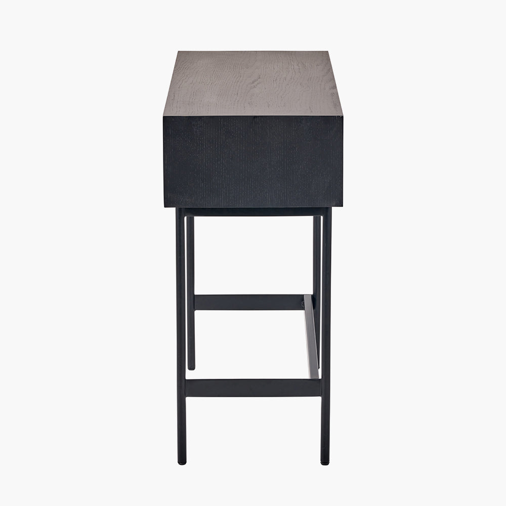 Introducing the Hailee Black and Natural Chevron Oak and Pine Wood 2 Drawer Console Table, a magnificent blend of style and functionality. This exquisite console table, meticulously crafted in Vietnam, features a stunning chevron effect oak veneer front that adds a touch of sophistication to any room.