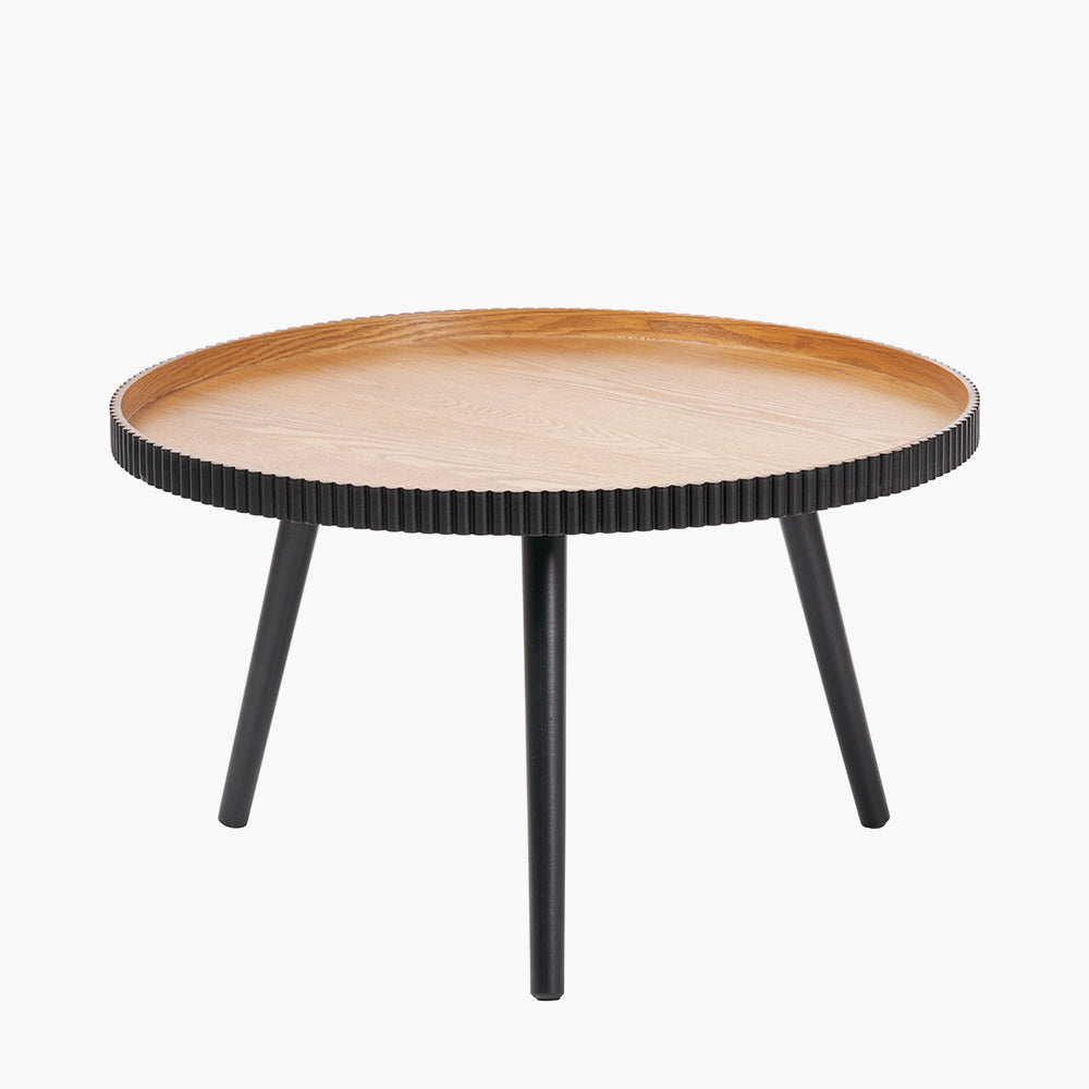 Crafted from premium pine wood, the table showcases a stunning melange of natural and black finishes that complements various décor styles. Its unique ribbed edging design not only enhances its aesthetic appeal but also provides a tactile experience that stands out.