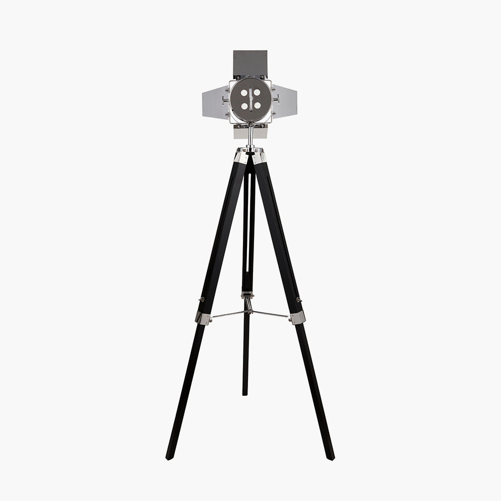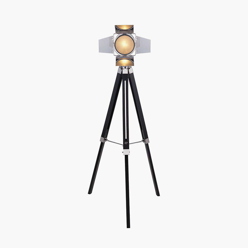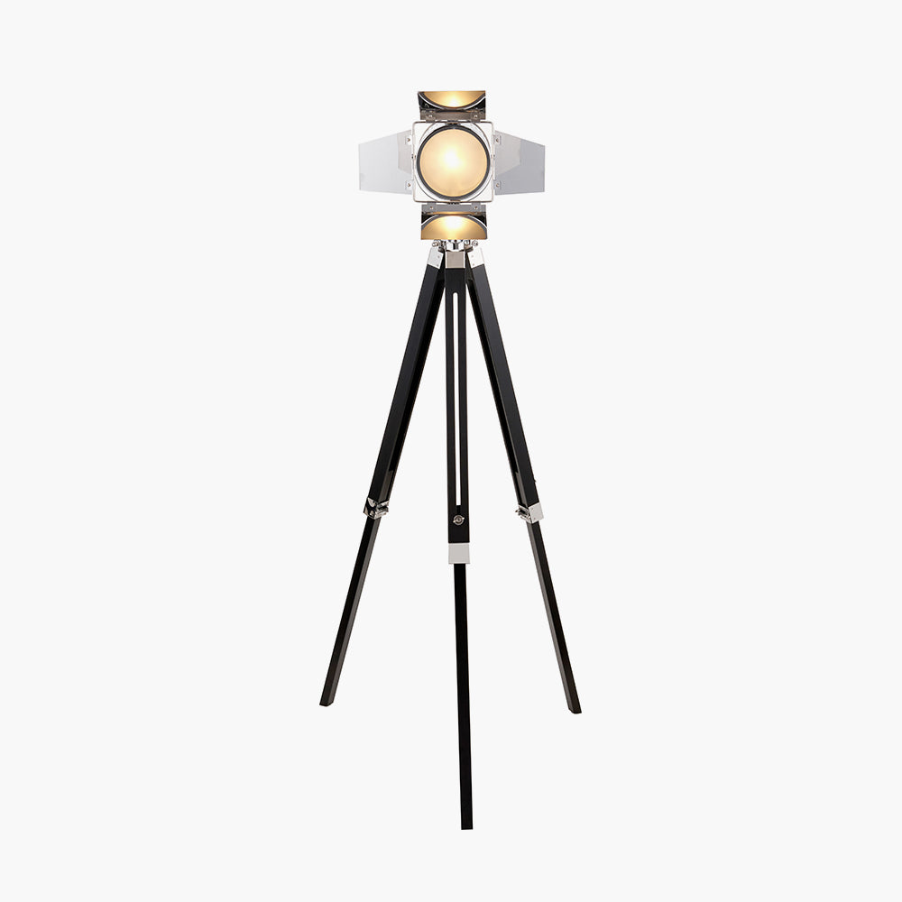 Add a touch of Hollywood glamour to your home with this black wood and silver tripod floor lamp. Featuring a film light head with shutters, this table lamp makes a statement in any room.