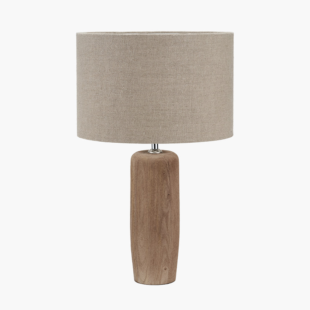 Crafted in India from mango wood, this elegant table lamp base showcases a minimalist silhouette and natural finish, perfect for enhancing any Scandinavian-inspired interior. The tall, gently curved lamp base is finished with a beautifully rustic, open weave natural jute linen cylinder lampshade, providing effective lighting while adding a refined, contemporary touch to your space.