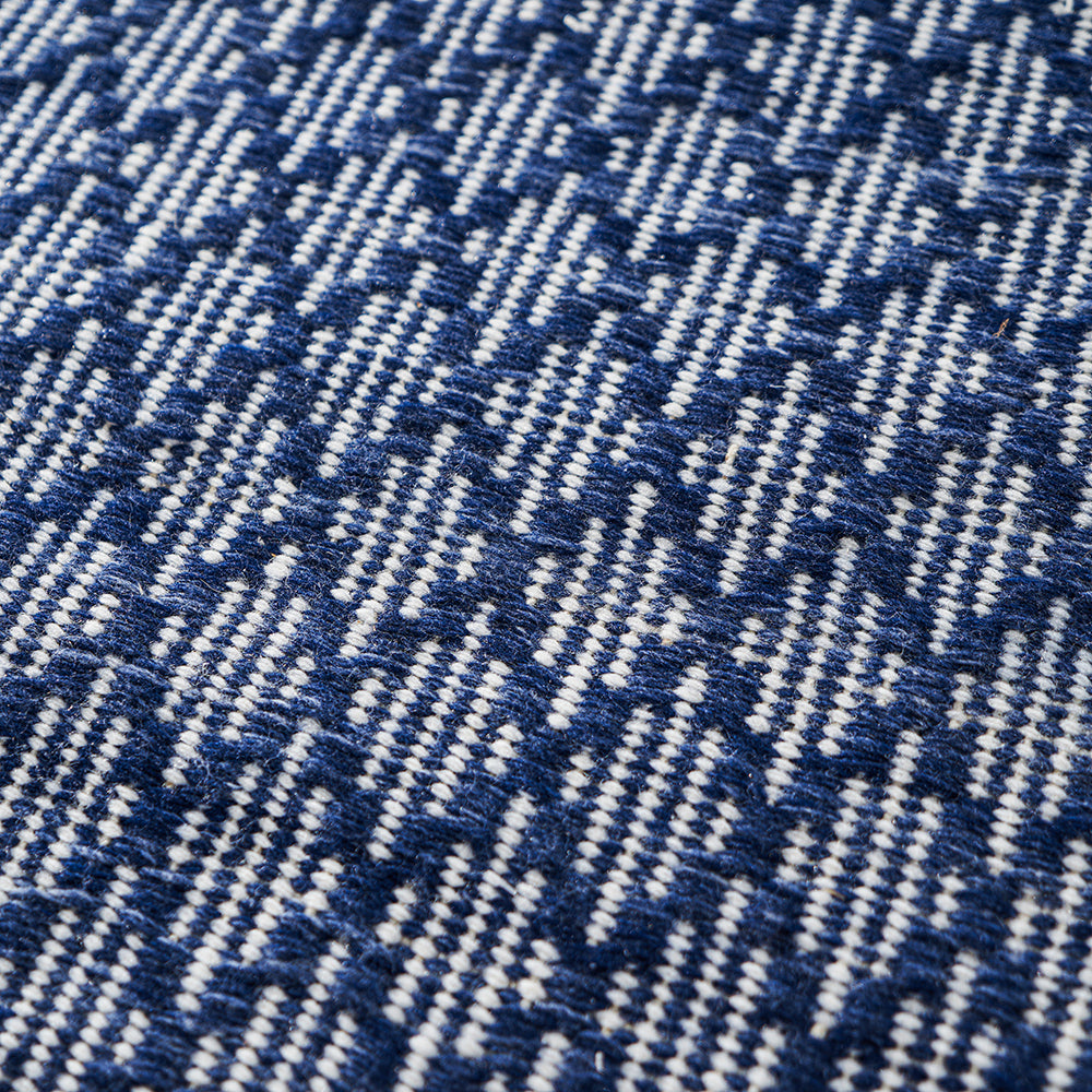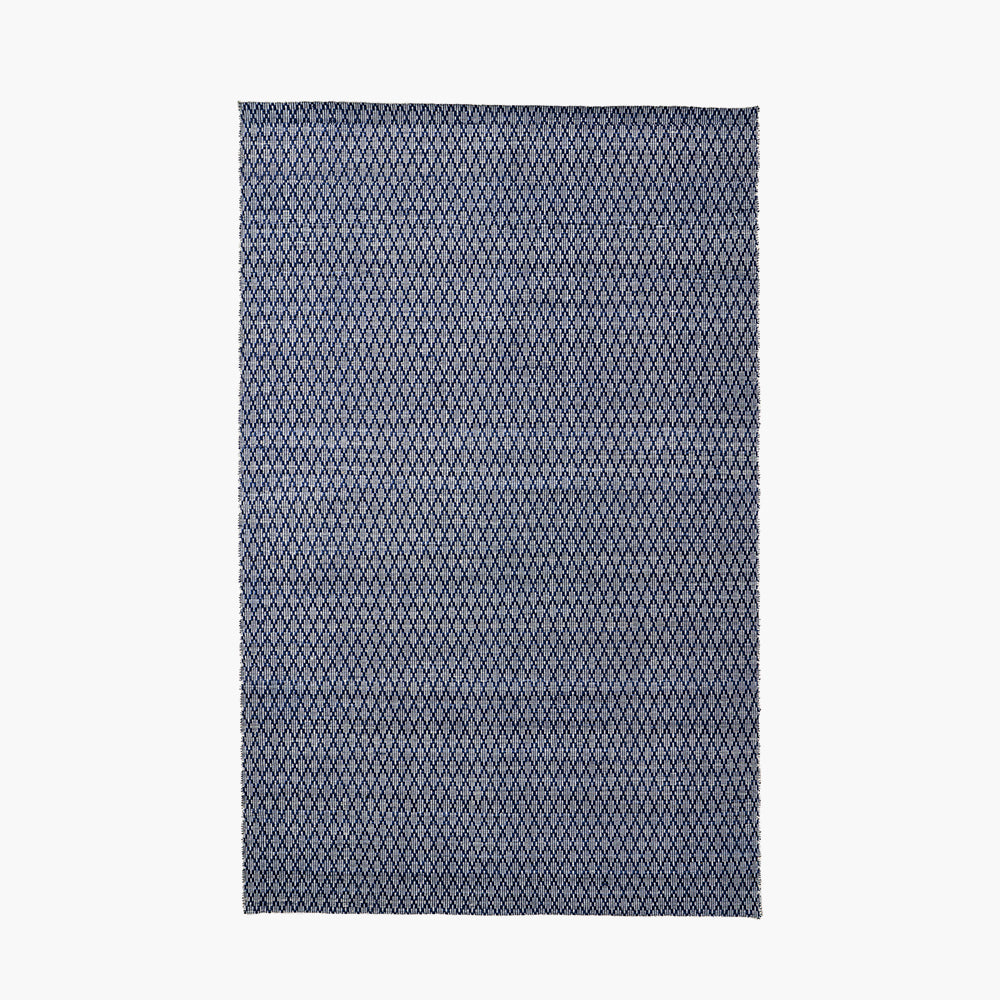 The Indoor Outdoor Denim Blue and White Ikat Design Rug makes eco-conscious style easy for any space. Part of the PET Yarn range, this rug is crafted from recycled plastics, spun into thin polyester yarns that create a textured, non-absorbent surface. Woven by skilled artisans in India, this rectangular rug blends modern pattern with durable performance for both indoor and outdoor use.