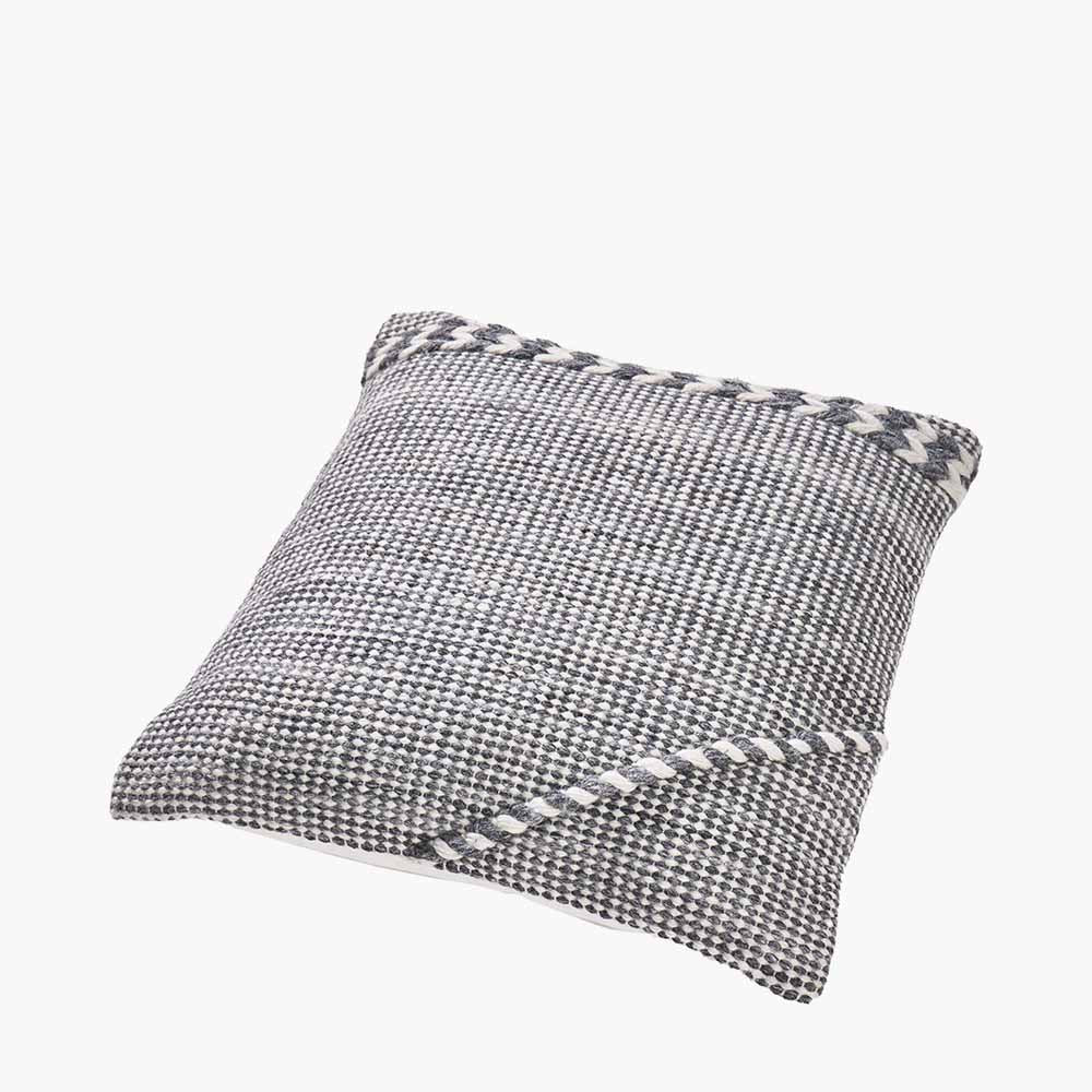 Featuring a unique raised plait in a diamond pattern, this cushion adds a touch of texture and visual interest while maintaining a chic and minimalist color palette of grey and white. Its versatile design allows it to seamlessly blend with various decor styles, whether indoors or outdoors.