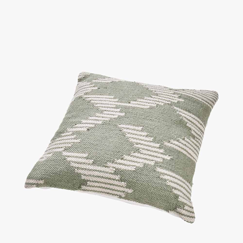 Indoor Outdoor Sage and White Chevron Design Scatter Cushion draws on our PET Yarn range, turning recycled plastics into a stylish, sustainable accent for both indoor and outdoor spaces. The cushion features a textured, non-absorbent surface created by thin polyester yarns, designed for lasting comfort and easy care.