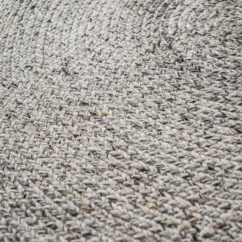 Indoor Outdoor Warm Grey Tweed Design Rug brings durable style to both indoor living spaces and outdoor seating areas. Part of the PET Yarn range, this rug is crafted from recycled plastics and presented as slim polyester yarn threads that our skilled weavers in India transform into a textured, non-absorbent surface. The round rug features a timeless tweed weave in tonal greys, offering a refined, versatile backdrop for any decor.
