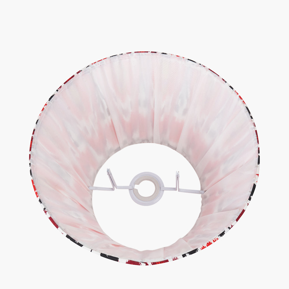 The Izara 30cm cotton gathered, tapered shade is adorned with a stunning Ikat pattern in a colour palette of reds. The show-stopping shade will look great on a multitude of bases.