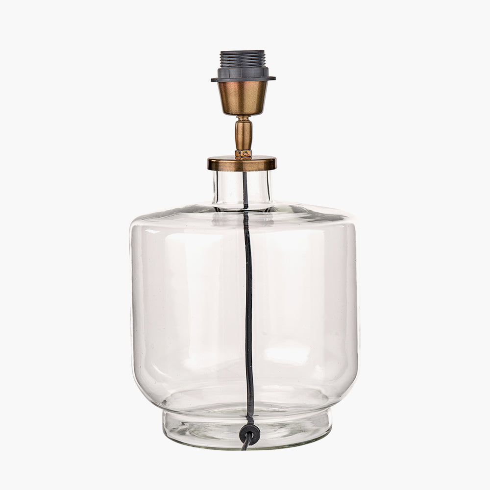 Illuminate Your Space with the Josie Clear Glass and Antique Brass Metal Table Lamp Base