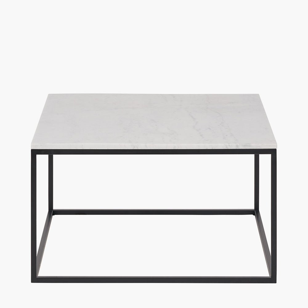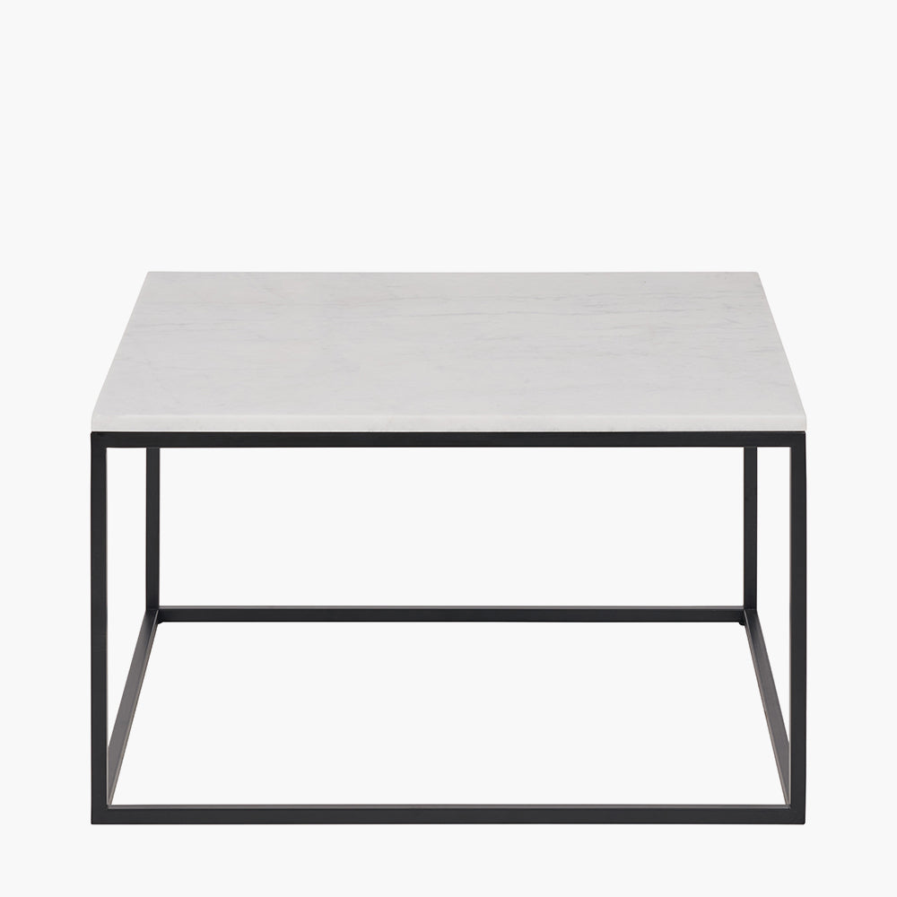 Elevate your living space with the Kalani White Marble and Black Metal Square Coffee Table, a stunning blend of elegance and modern design. This exquisite coffee table is not just a functional piece; it is a statement of sophistication that will instantly become the centerpiece of your living room.
