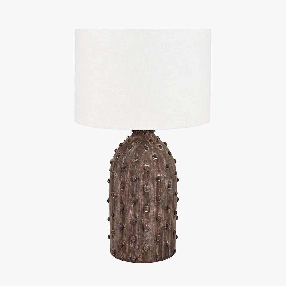 Kali Textured Dot Grey Stoneware Table Lamp Base with Lino 30cm White Self Lined Linen Cylinder Lampshade