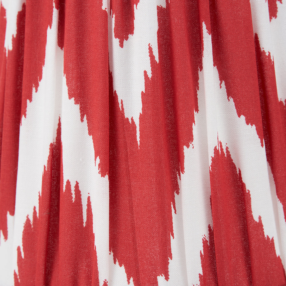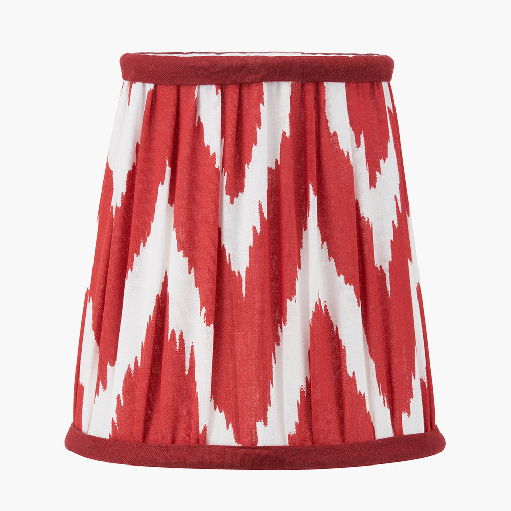 The Kamilah 14cm cotton mushroom pleat, tapered lampshade showcases a vibrant red and white chevron pattern, with a deeper red binding, adding a fresh and contemporary touch to any room. This eye catching design features a 'candle clip' fitting, attaching to the to the bulb, where a smaller shade is required.