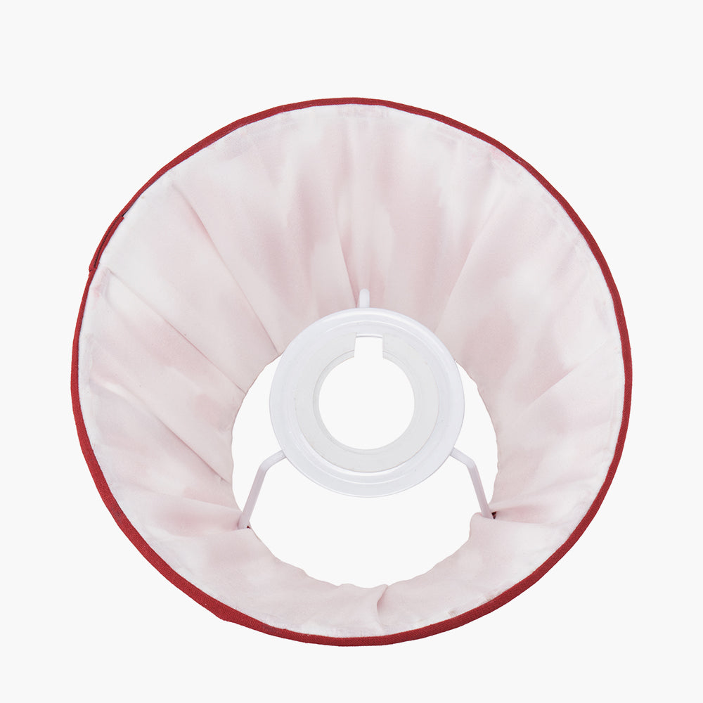 The Kamilah 16cm cotton mushroom pleat, tapered lampshade showcases a vibrant red and white chevron pattern, with a deeper red binding, adding a fresh and contemporary touch to any room. This eye catching design pairs effortlessly with a variety of lamp bases.