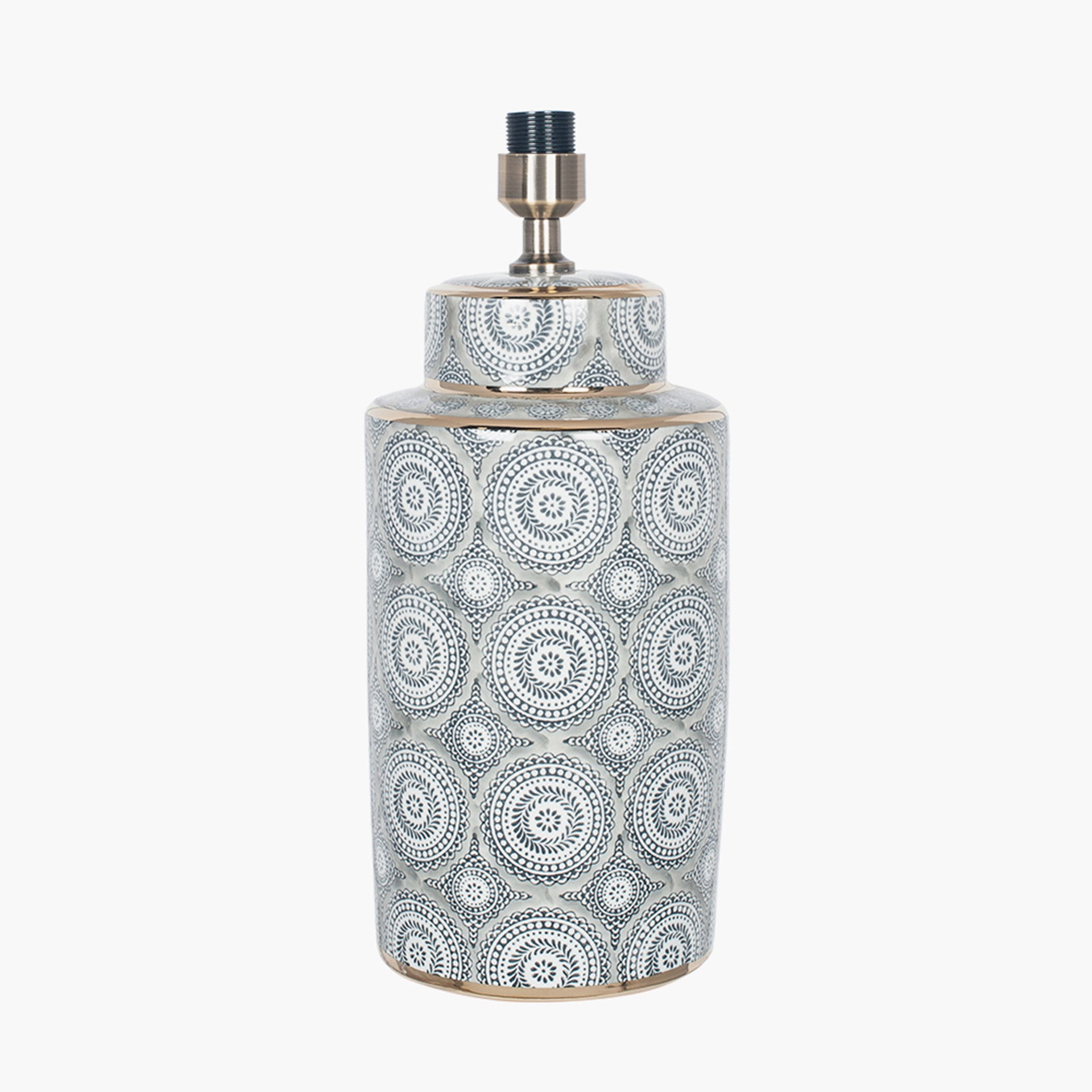 Illuminate your space with the stunning Kari Circle Pattern Ceramic Table Lamp Base, a perfect blend of modern design and artistic flair. This exquisite lamp base features a bold geometric pattern in sophisticated grey and white circles, accented by luxurious gold detailing that elevates any room's decor.