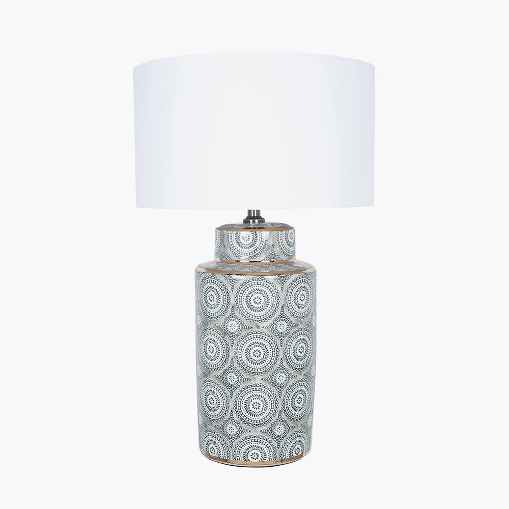 Kari Circle Pattern Ceramic Table Lamp Base with Harry 40cm Ivory Cotton Mix Cylinder Lampshade