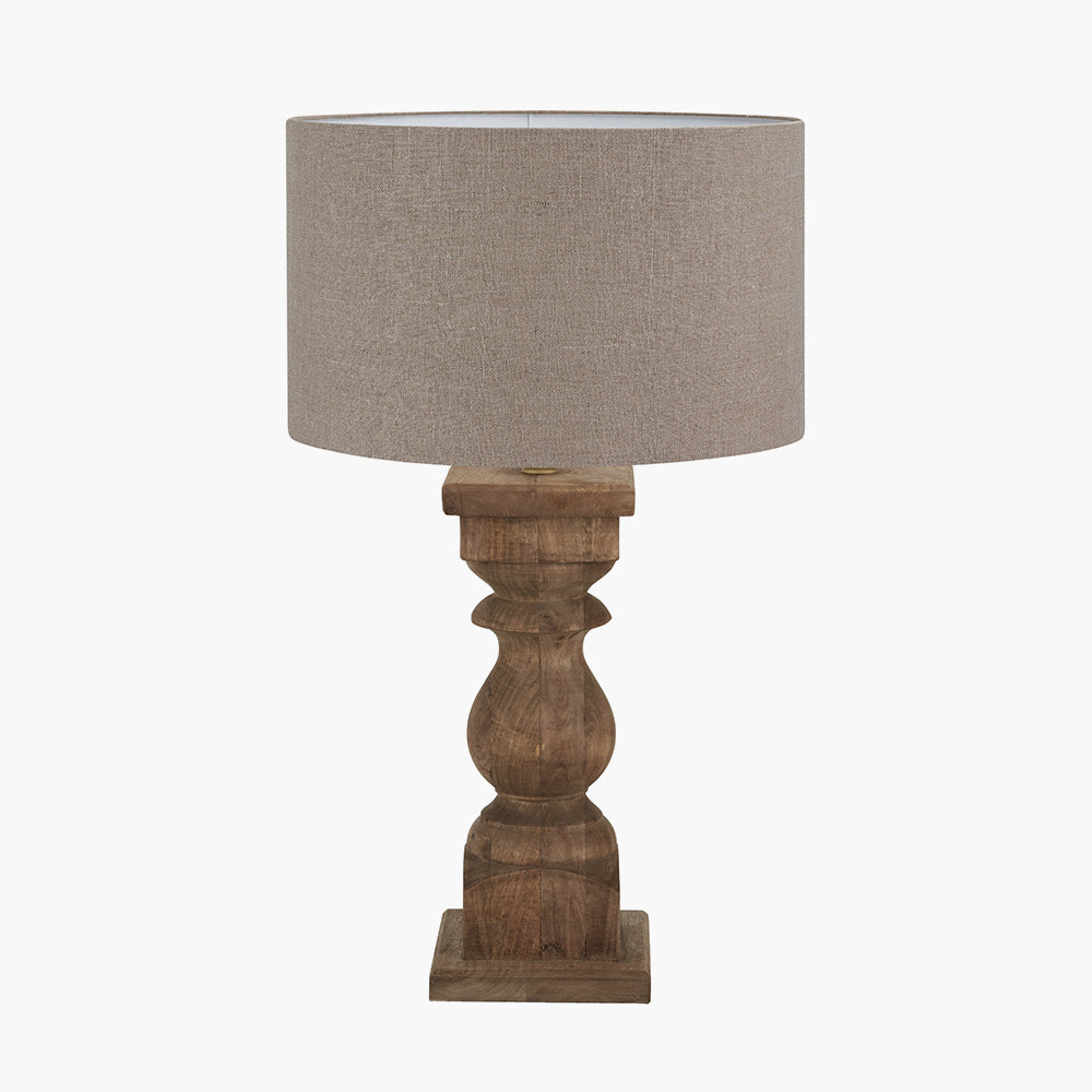 Our Kavya Table Lamp Base is a beautiful rustic turned wood base, handcrafted in India and finished in an Antique Brown Wash mango wood. This statement lighting solution is topped off perfectly with a beautifully rustic, open weave, nautral jute linen cylinder lampshade to complete the look.