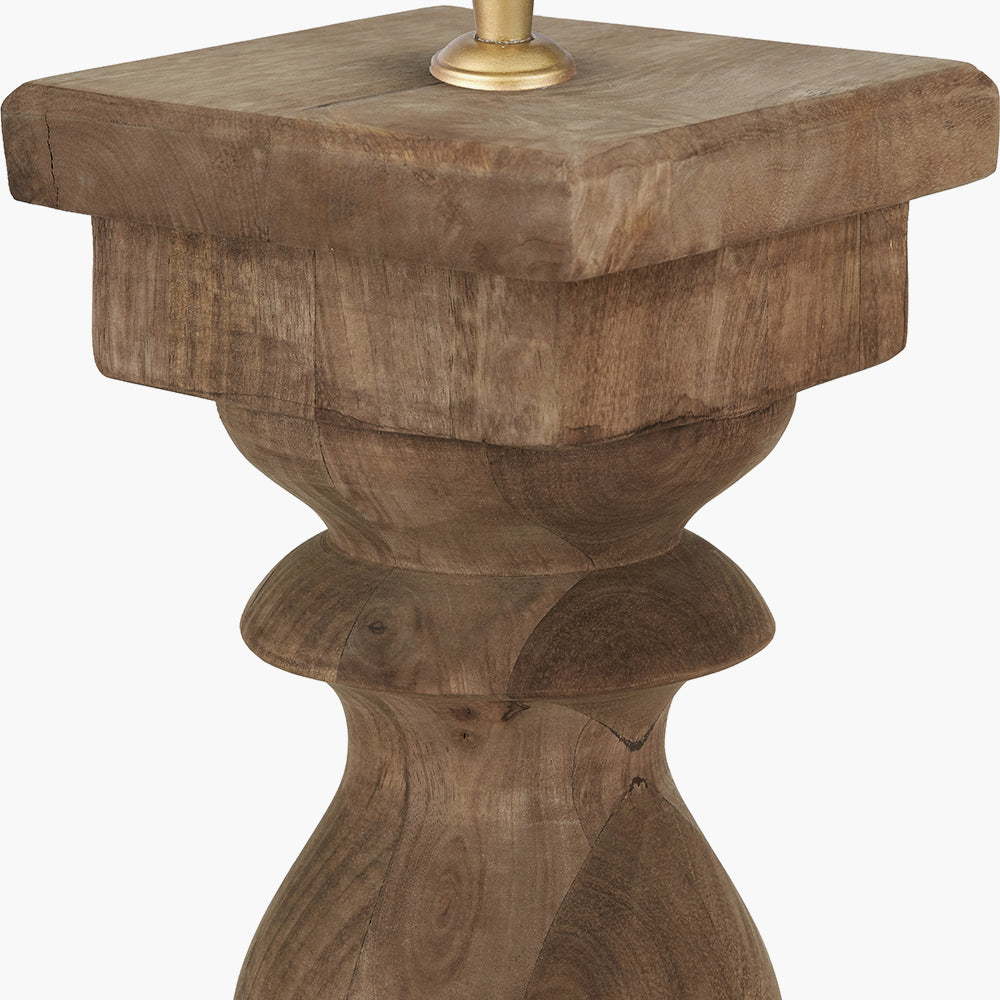 Our Kavya Table Lamp Base is a beautiful rustic turned wood base, handcrafted in India and finished in an Antique Brown Wash mango wood. This statement lighting solution is topped off perfectly with a cinnamon coloured, ikat patterned mushroom pleat tapered cotton lampshade to complete the look.