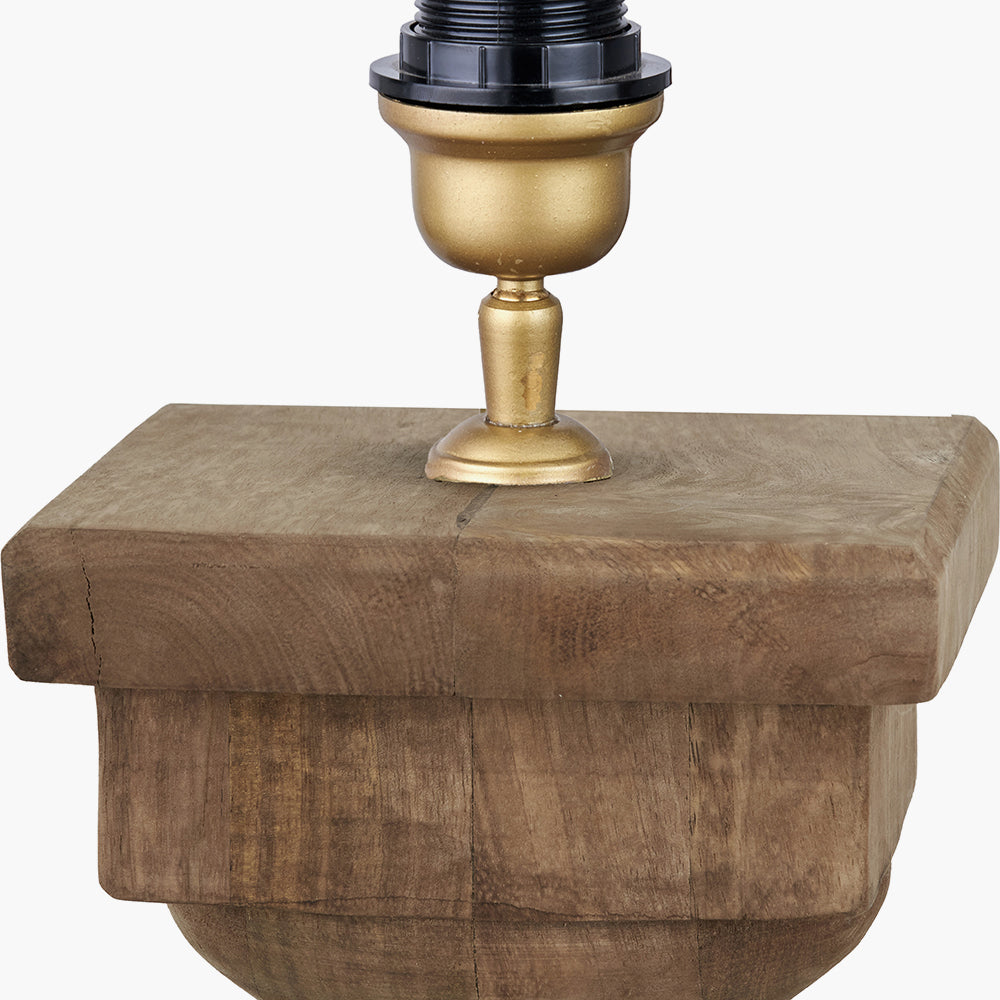 Our Kavya Table Lamp Base is a beautiful rustic turned wood base, handcrafted in India and finished in an Antique Brown Wash mango wood. This statement lighting solution is topped off perfectly with a blue coloured, ikat patterned mushroom pleat tapered cotton lampshade to complete the look.