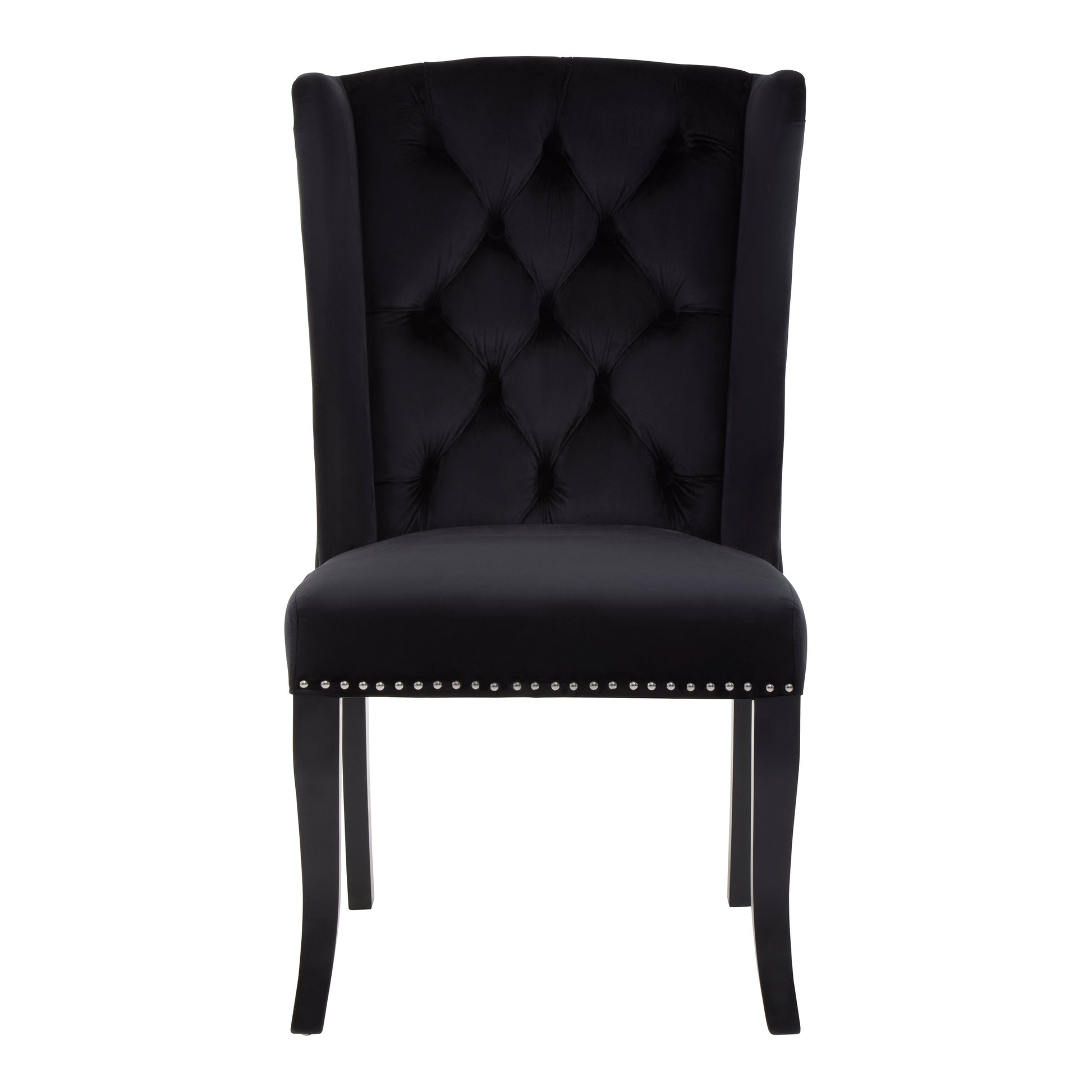 - Luxurious Velvet Upholstery: Crafted from premium black velvet, this chair not only boasts a stunning visual appeal but also delivers a soft and inviting seating experience.