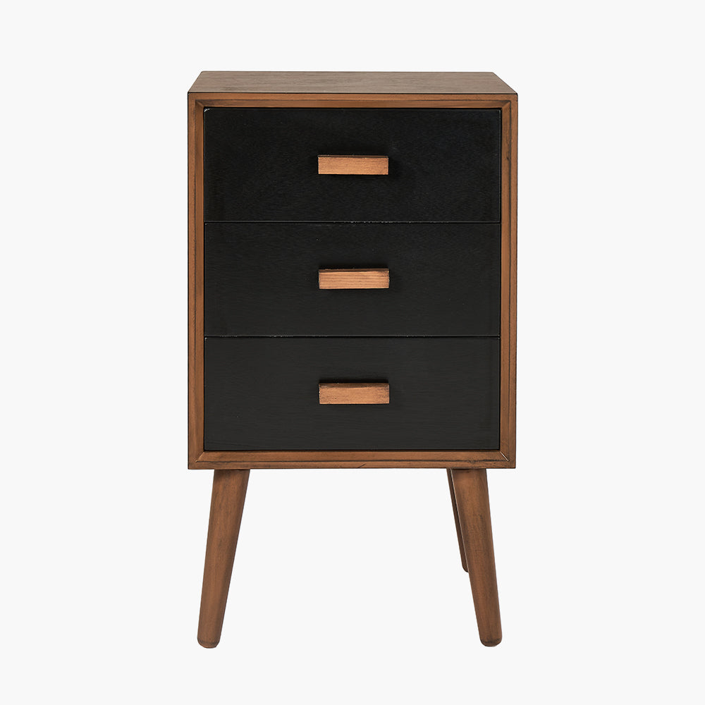 Introducing the Klee Black Pine Wood 3 Drawer Bedside, where contemporary elegance meets retro charm. This stunning piece is designed to be the focal point of your bedroom, offering functionality without compromising on style.
