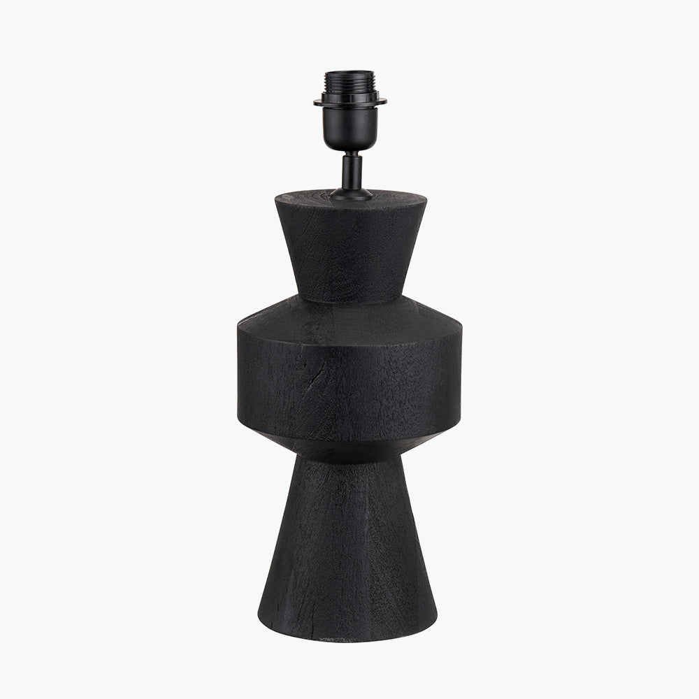 Illuminate your space with the Koa Black Mango Wood Contemporary Table Lamp, a stunning blend of modern design and natural beauty. Crafted in India, this exquisite lamp features a sleek black finish, showcasing the rich texture and grain of mango wood, making it an eye-catching addition to any decor.