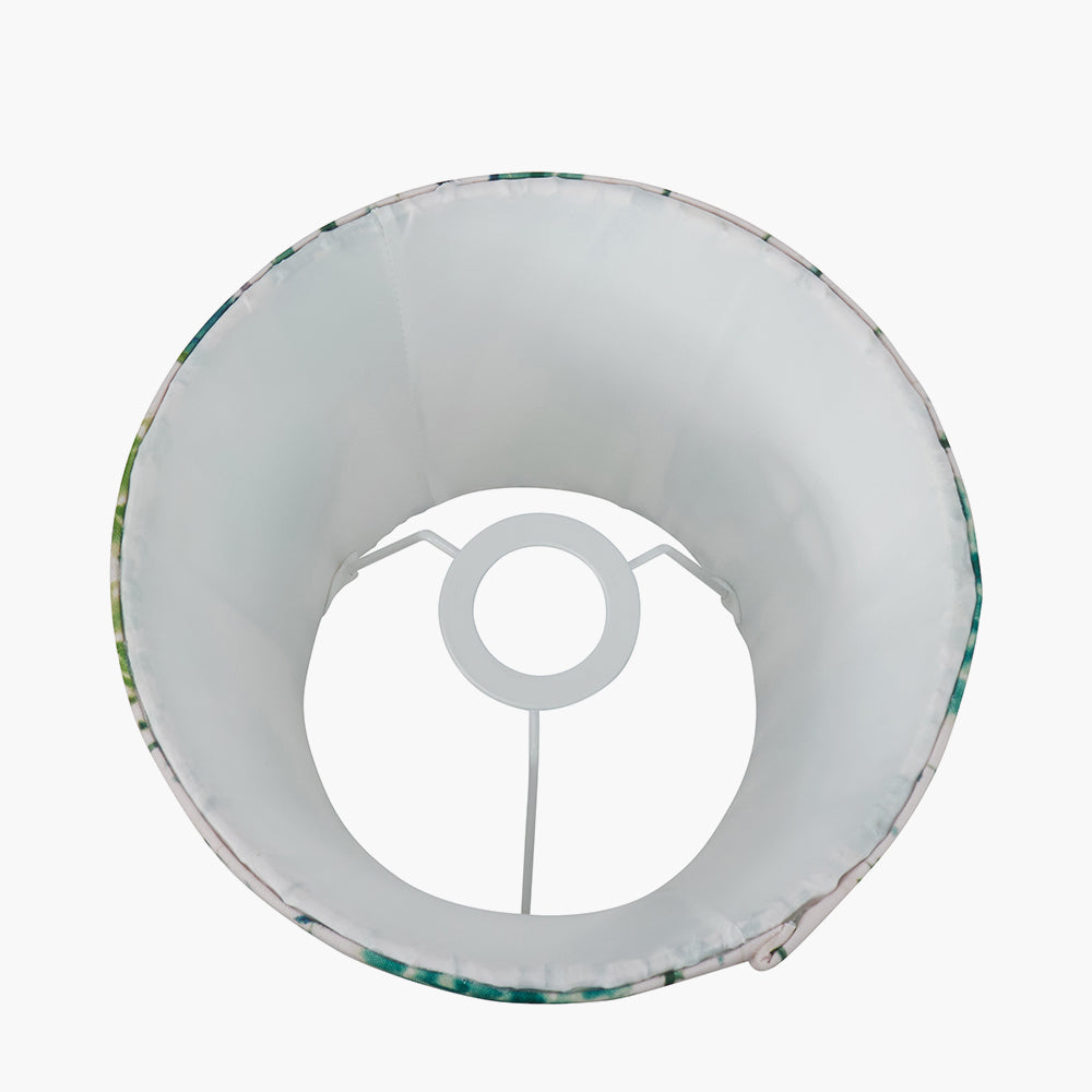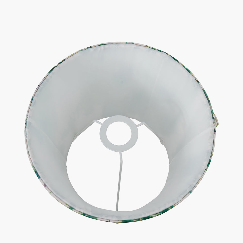 Transform your living space into a serene sanctuary with the Kyoto Flower 16 Pleated Shade Emerald. This exquisite hand-pleated lamp shade features a stunning floral design by Designers Guild, showcasing vibrant emerald green inky renderings of peonies and roses. Set against a soft water-colored striped background, this shade captures the essence of springtime blossoms in Kyoto.