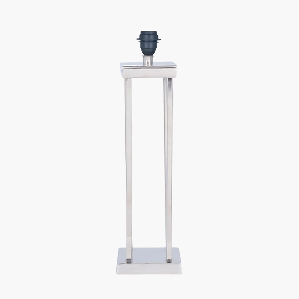 Langston Nickel Metal Column Table Lamp Base with Lino 40cm Grey Self Lined Linen Cylinder Lampshade