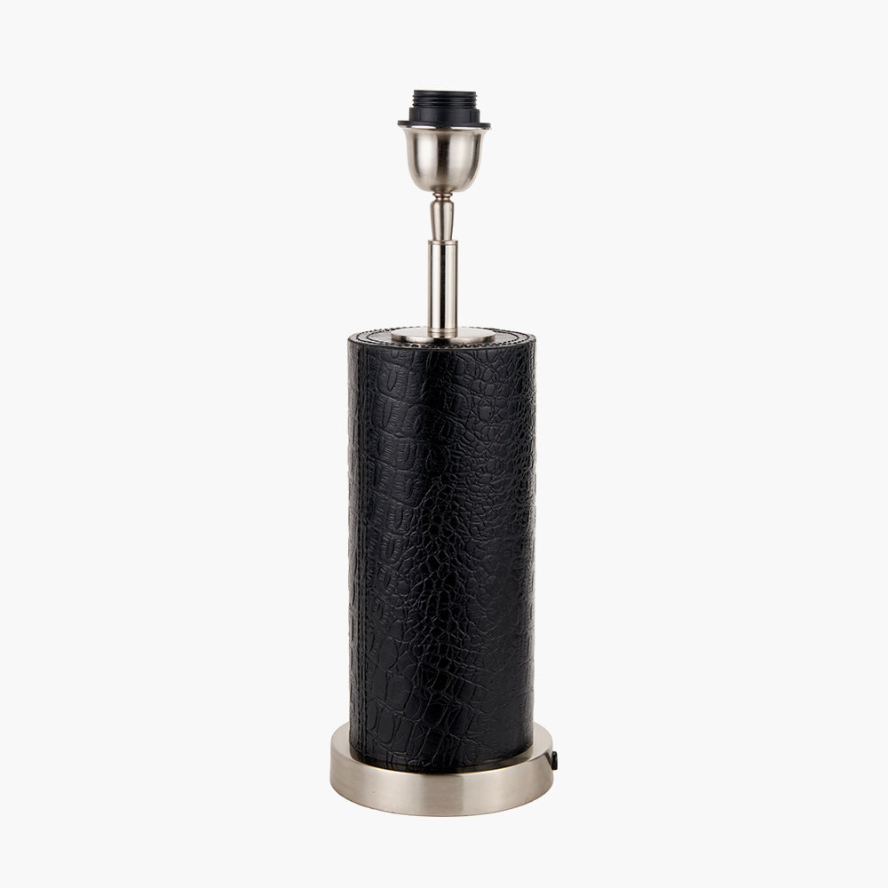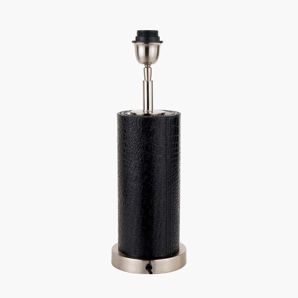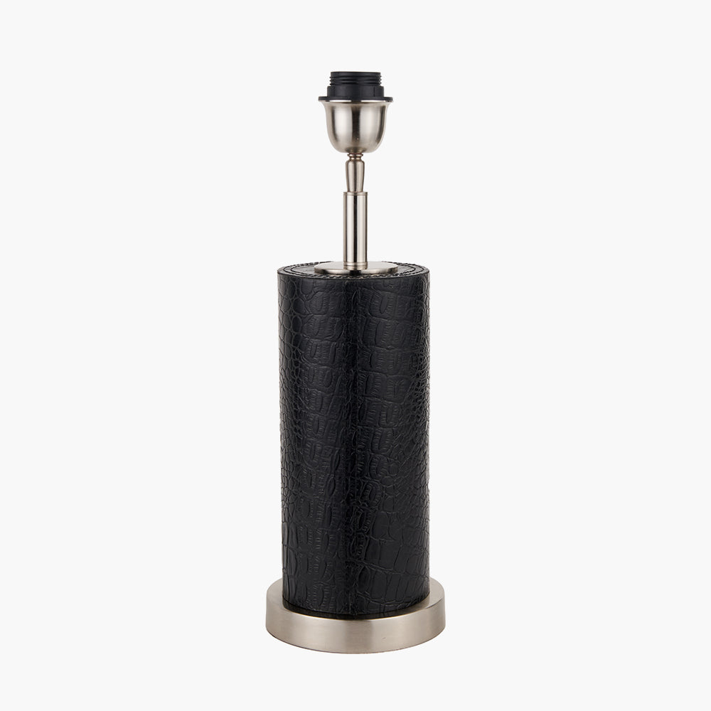 Illuminate Your Space with the Laurence Black Croc Leather and Silver Cylindrical Table Lamp Base