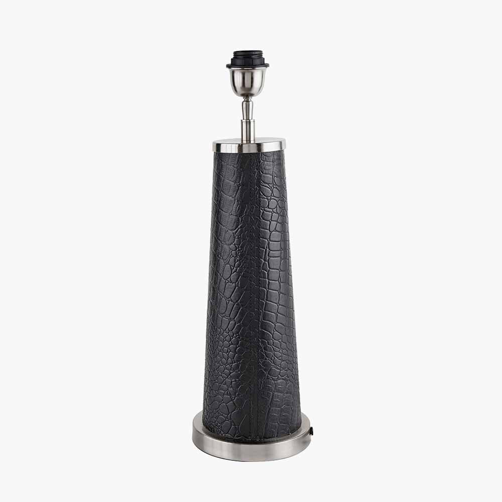 Elevate Your Space with the Laurence Black Croc Leather and Silver Table Lamp Base