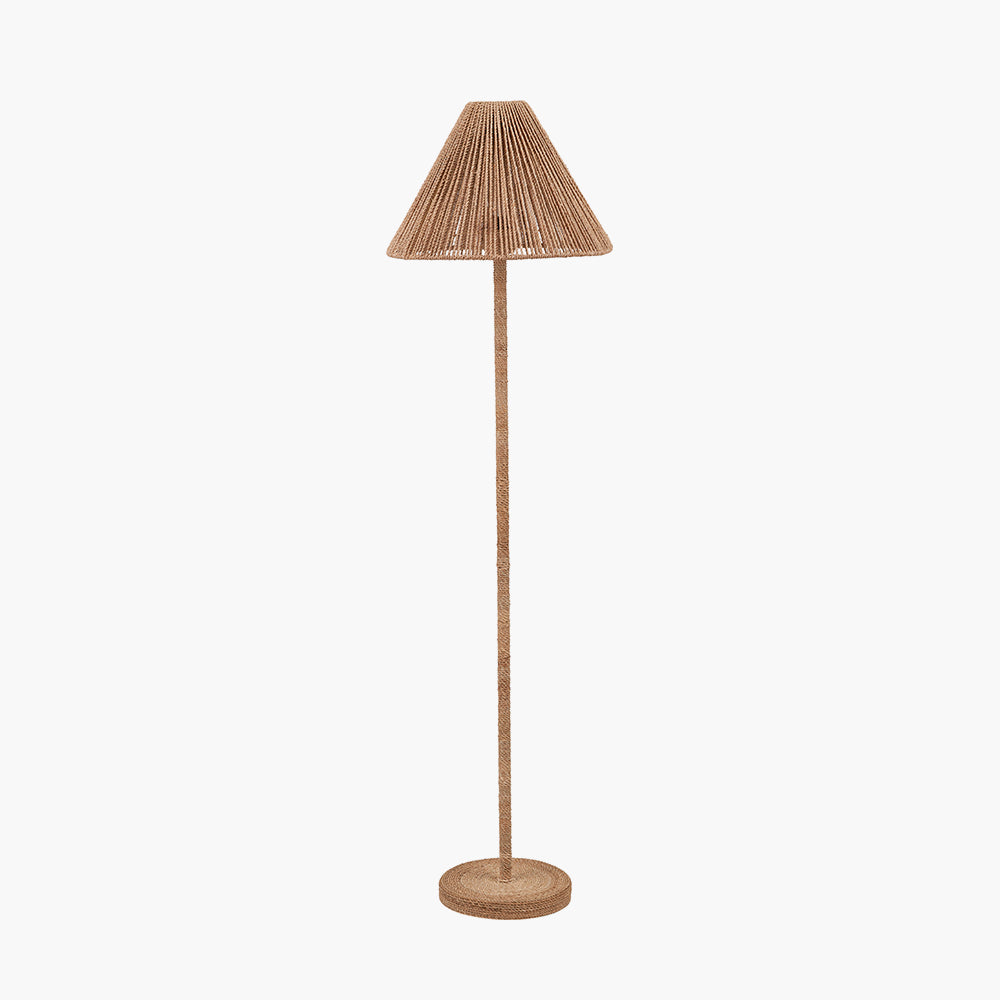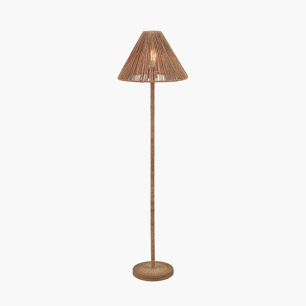The Leif Floor Lamp is handcrafted from natural jute, seamlessly blending minimalist design with artisanal craftsmanship. Its textured finish and clean silhouette create an understated aesthetic. When illuminated, the jute rope shade casts a warm, inviting glow, adding both texture and ambience to any space.
