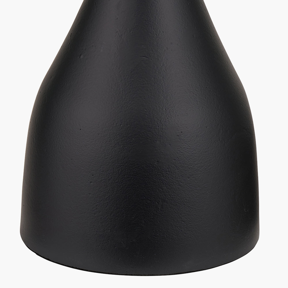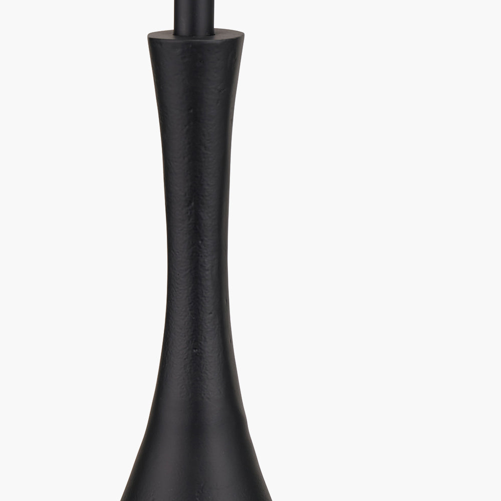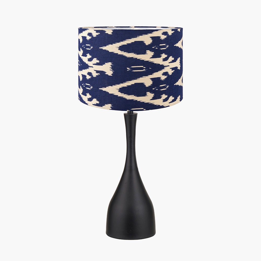 Elevate your space with the Llora Matt Black Metal Curved Table Lamp Base, paired with the Lars 35cm Ocean Blue Ikat Patterned Cylinder Lampshade. Crafted in India, this metal table lamp combines a sleek matte black finish with a tall, curved base for a contemporary, versatile silhouette.