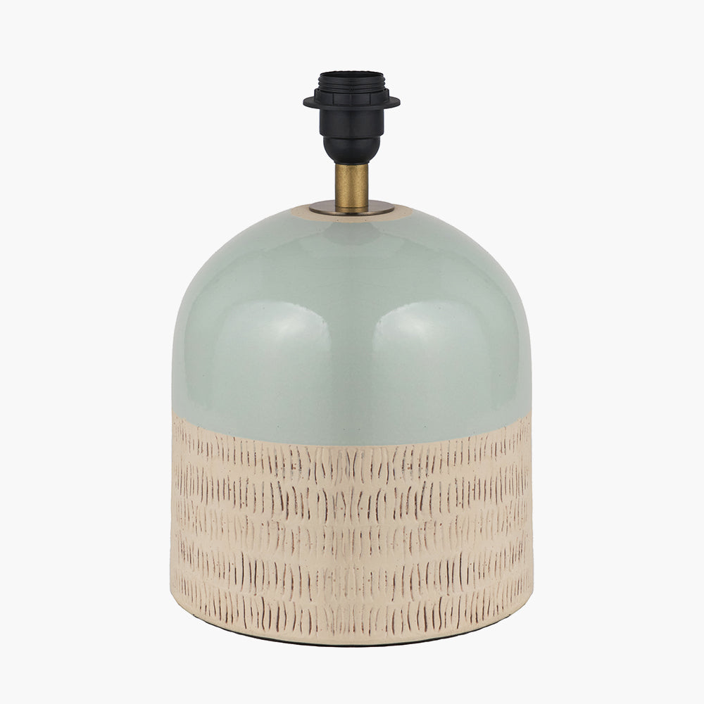 The Lotta Duck Egg and Natural Stoneware Table Lamp Base with Edward 35cm Natural Linen Cylinder Lampshade is a refined lighting piece that brings Scandi-inspired calm to any space. A hand-applied textured natural finish sits against a sleek duck egg glaze, creating a subtle contrast that catches the eye without overpowering the room.
