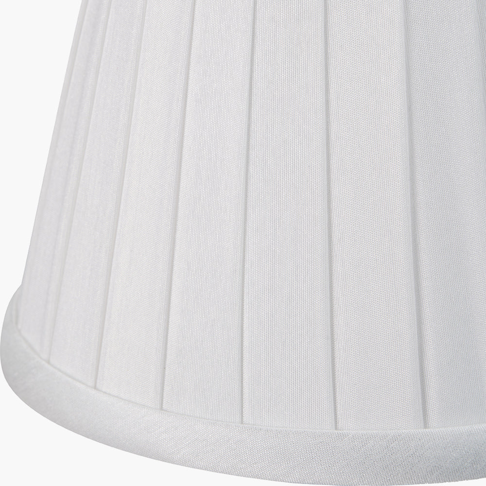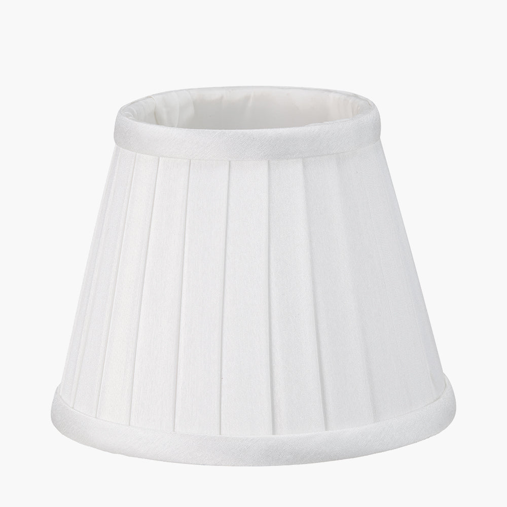 A current twist on a classic shade, this 17cm knife pleat silk mix shade in ivory has such a contemporary profile; it can cross the divide.
