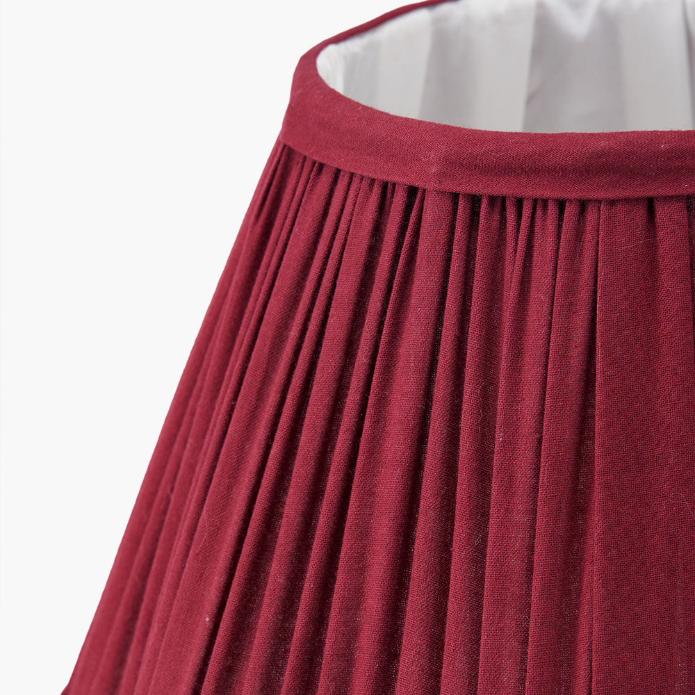 The Malia 25cm lampshade is a beautifully crafted mushroom pleat, scalloped lampshade, in a rich red hue with self colour binding. Its elegant silhouette and detailed pleating are enhanced by the soft curves of the scalloped edge, creating a bold yet timeless look. Designed to stand out, this striking shade adds warmth and character to any lamp base, making it a perfect statement piece for both classic or contemporary interiors.