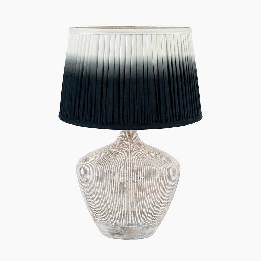 Elevate your living space with the Manaia White Wash Textured Wood Table Lamp Base, a curved, elegant silhouette designed for contemporary rooms. Crafted in India, this lamp features a mango wood base enriched by a hand-carved pattern and finished in a subtle whitewash to highlight natural grain and texture.