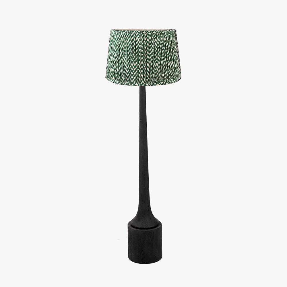 Introducing Marin Black Wood Tall Neck Floor Lamp Base with Vienna 45cm Forest Green Chevron Mushroom Pleat Lampshade — a refined lighting piece that blends a sleek black finish with a textured mango wood base. Hand finished in India, this floor lamp brings a touch of sophistication to any room.