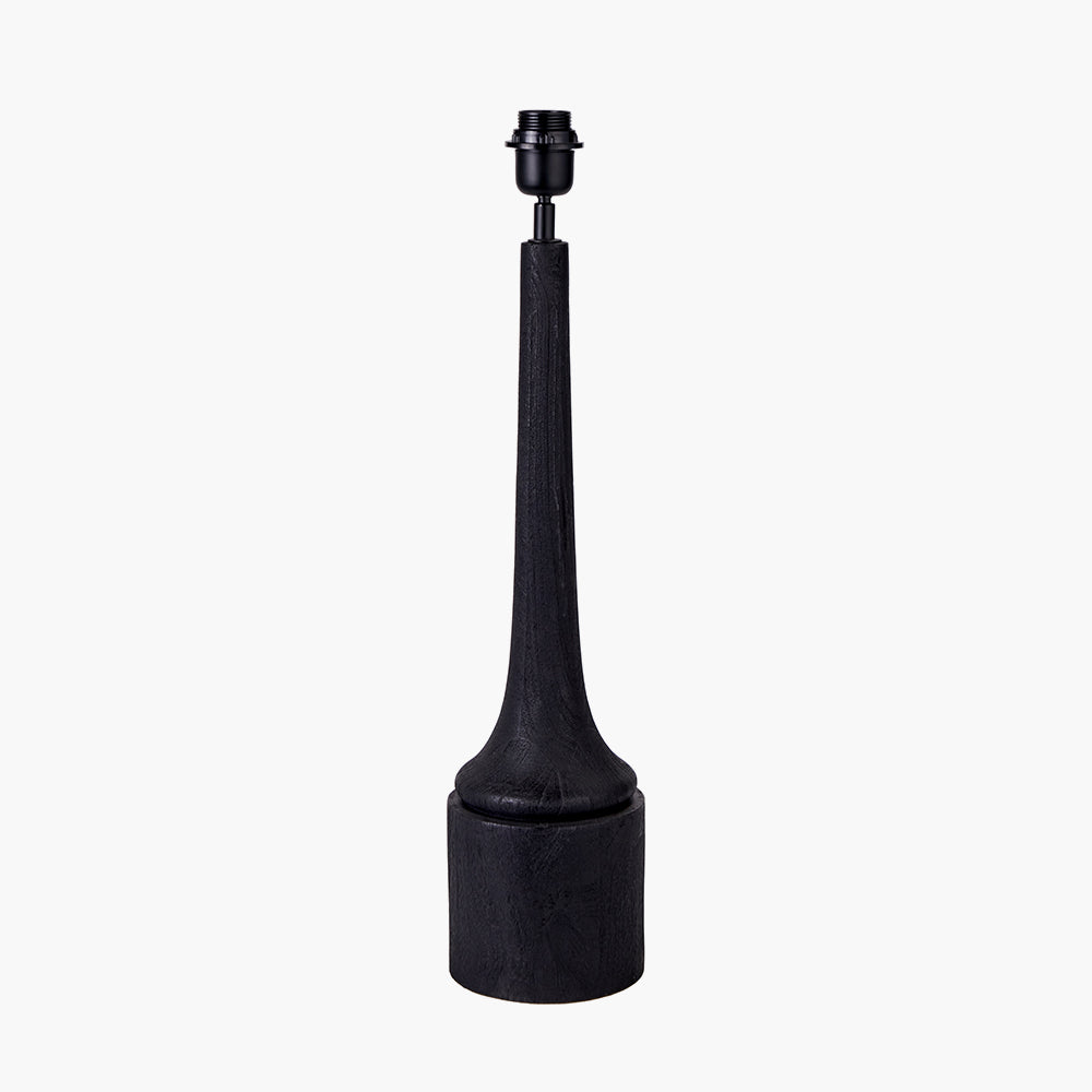 Marin Black Wood Tall Neck Table Lamp Base brings a refined, monochrome accent to any room. Hand-finished in India, its textured mango wood base and slender silhouette deliver elegance with a contemporary edge.