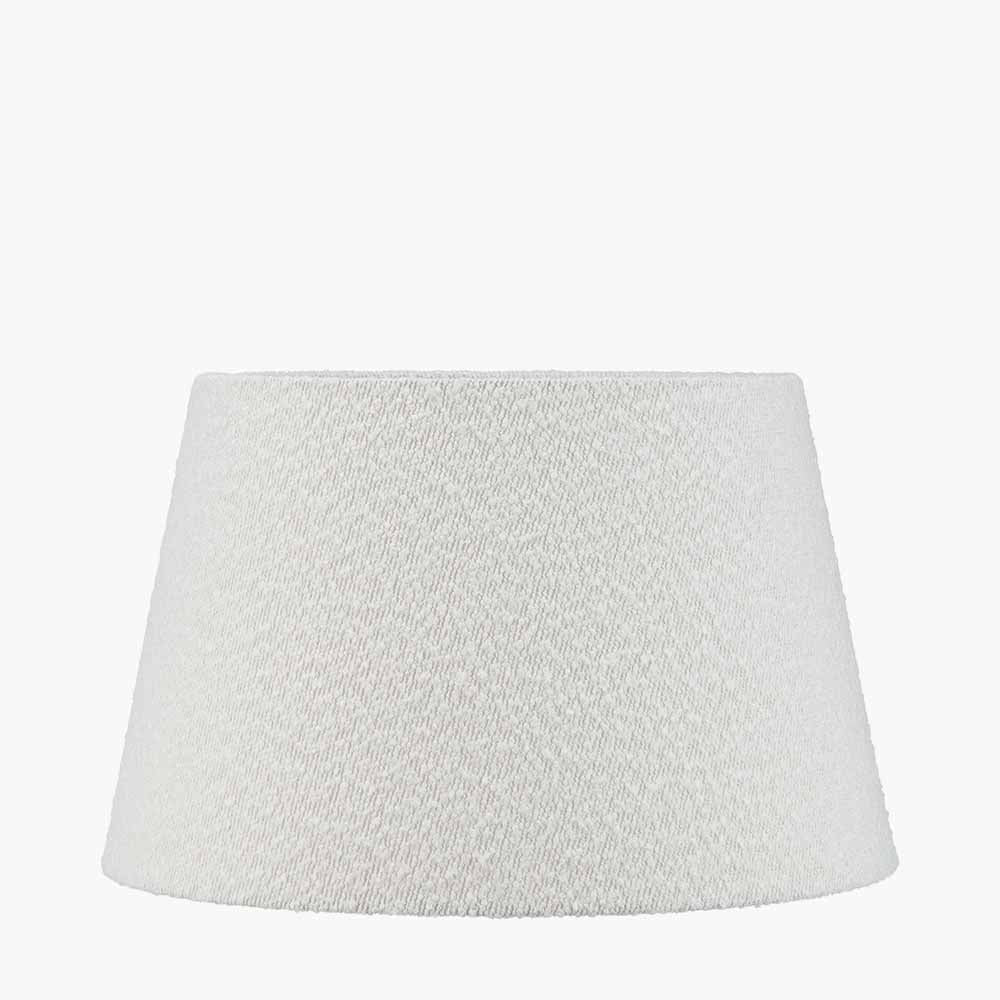 The Martigues 40cm shade is classically modern in style with its tapered profile. It is finished in a crisp white textured boucle material lined with matching colour cotton mix. The perfect addition to a lamp or ceiling in a neutral decor. Some larger shades within this range feature a reversible gimbal, suitable for table, floor, or ceiling use. Contact our Customer Support Team to confirm sizing and availability