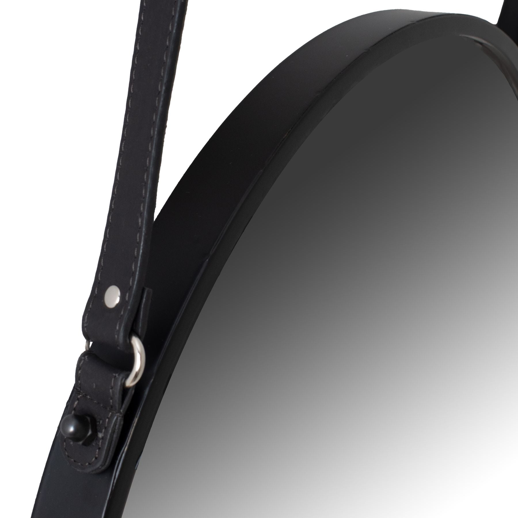 Transform Your Space with the Matt Black Rimmed Round Hanging Wall Mirror With Black Strap