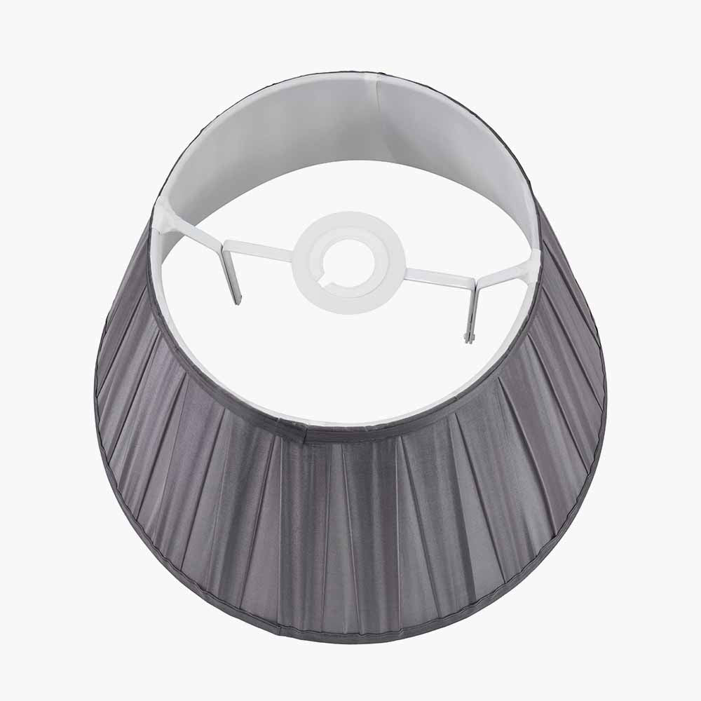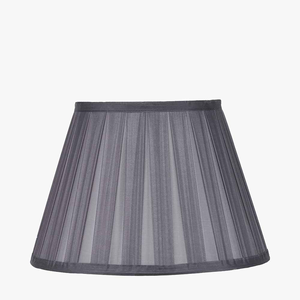 Made from a high-quality silk, our Maya 45cm lampshade is perfect to complement a classic look with its steel grey colouring. Its tapered shape features a wide box pleat detailing with a trim at the top and bottom, and it is lined in a soft colour to enhance a warm glow of light.