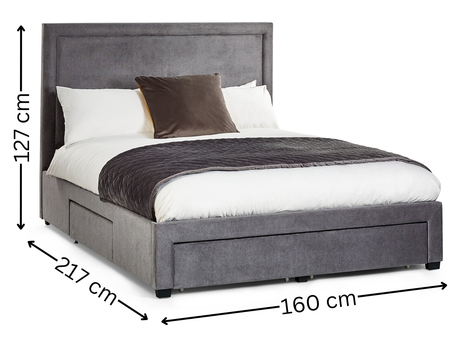 Meet the Mayfair 150cm King 4 Drawer Storage Bed — a sophisticated grey upholstered bed that blends elegance with practical storage. Its refined headboard outline and softly padded panel deliver luxurious comfort, making it ideal for relaxing evenings and peaceful mornings. Four under-bed drawers provide generous, discreet storage to keep bedrooms neat and organized, all while maintaining a sleek, modern look.