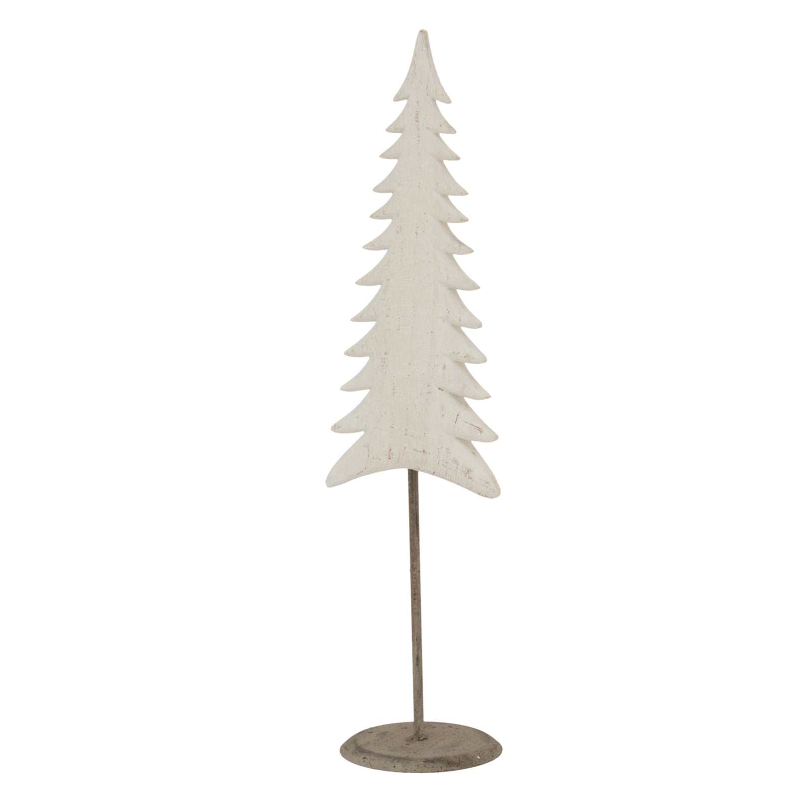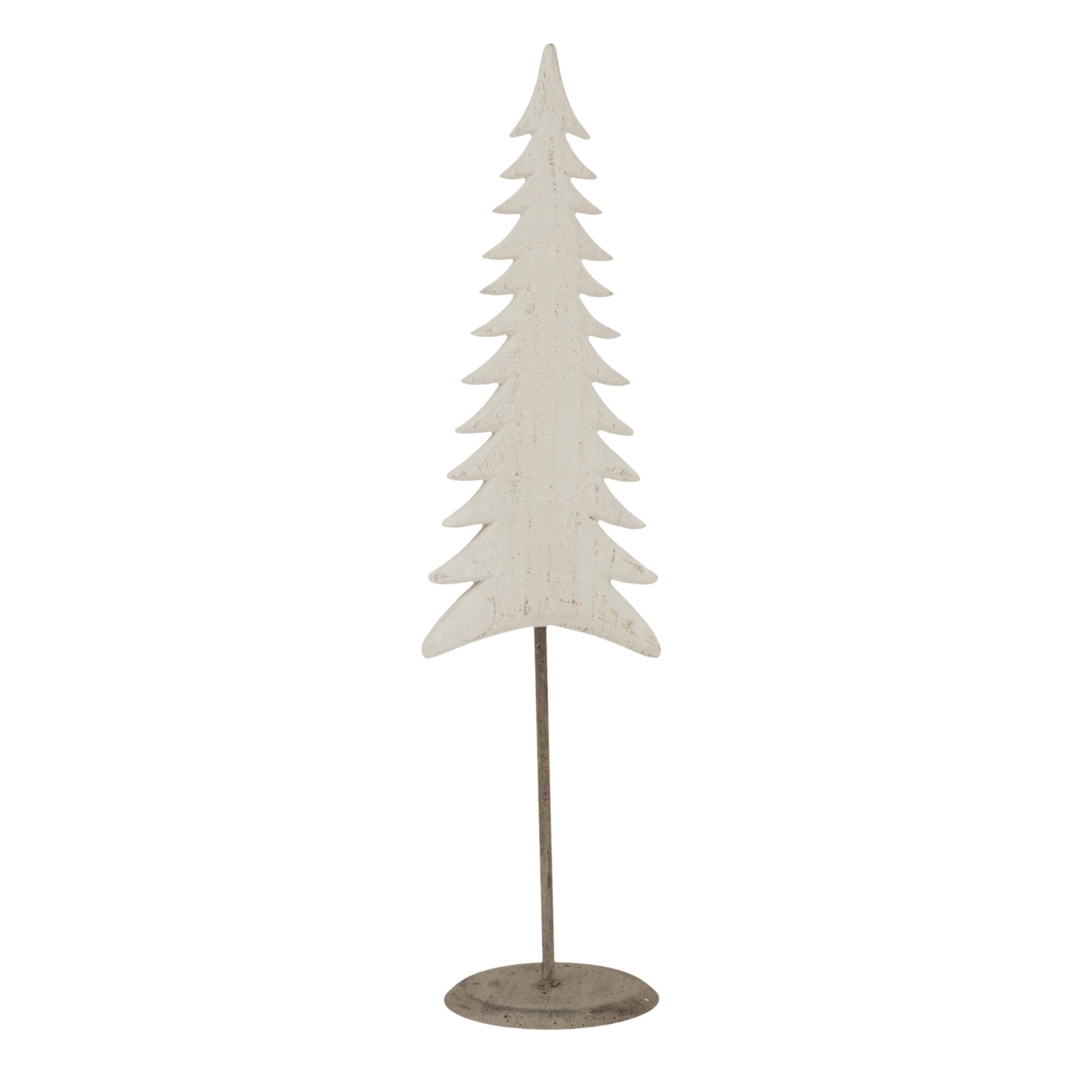 Medium-sized, whitewashed tall tree on a stand that blends minimalist form with enduring craftsmanship, making it an adaptable accent for boutiques, design stores, and home décor environments.