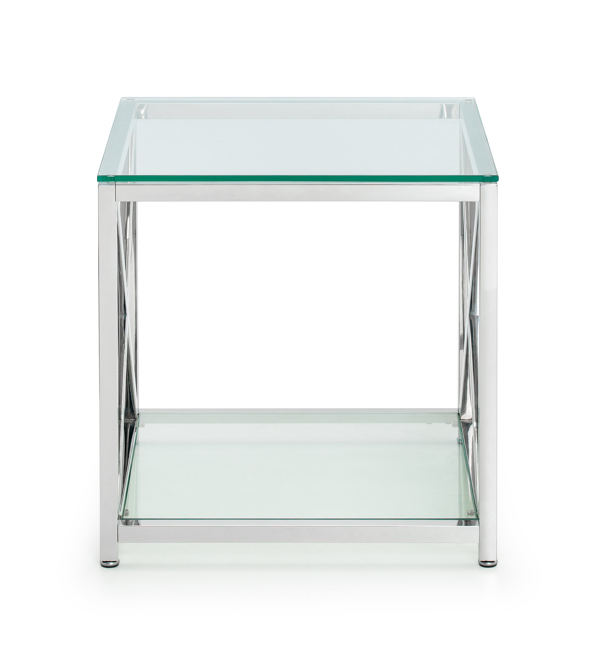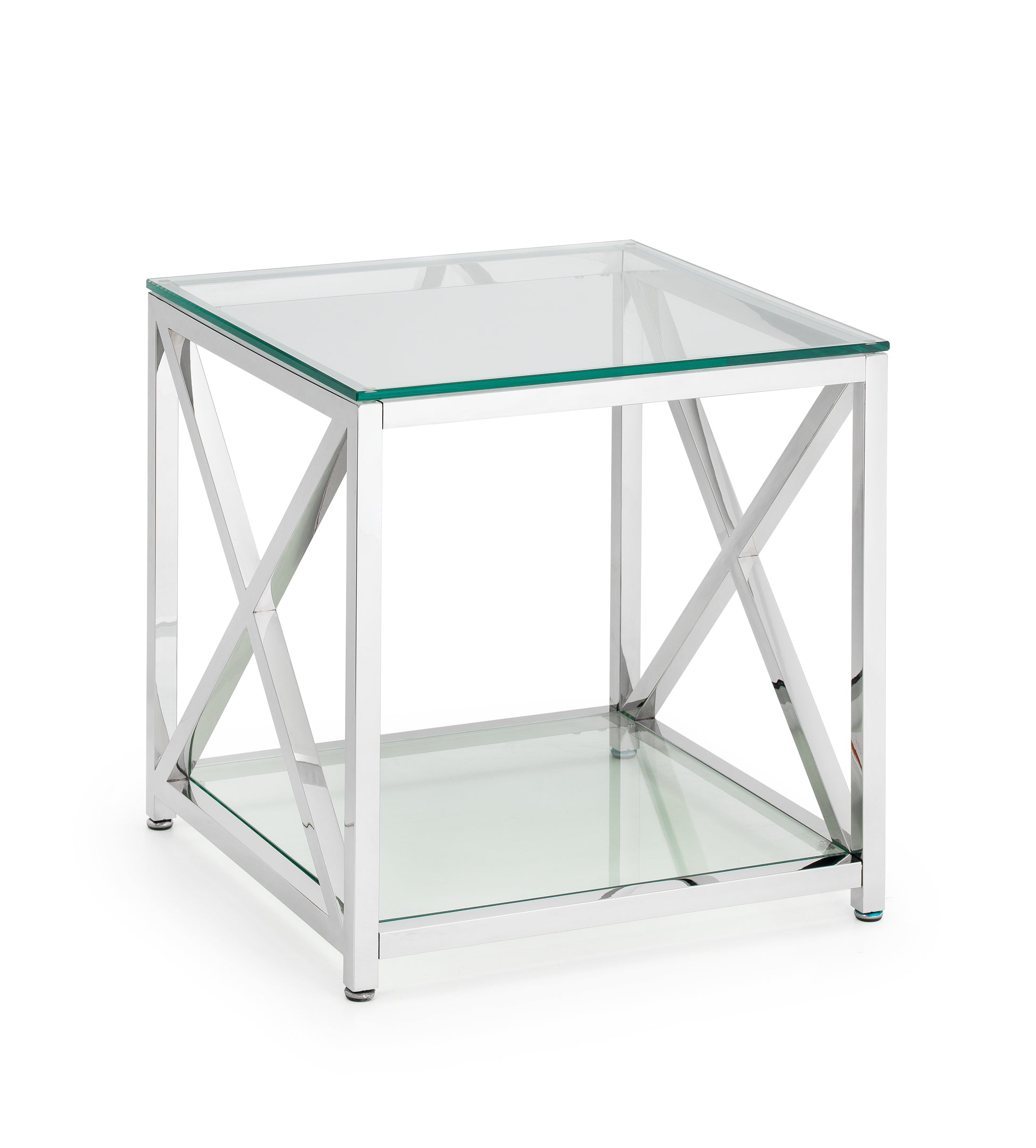 Inspired by the iconic Art Deco period, this lamp table features a striking cross-frame silhouette that captures timeless style. The high-quality stainless steel frame is finished in a refined silver tone, while the tempered glass top offers a pristine, contemporary surface that’s both durable and easy to clean.